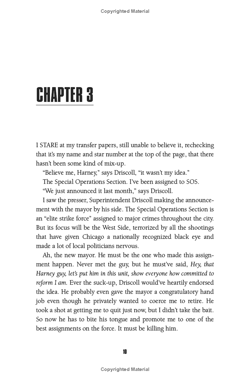 For Detective Billy Harney, getting shot in the head, stalked by a state’s attorney, and accused of murder by his fellow cops is a normal week on the job. So when a drive-by shooting on the Chicago's west side turns political, he leads the way to a quick solve. But Harney's instincts—his father was once chief of detectives and his twin sister, Patti, is also on the force—run deep. As a population hungry for justice threatens to riot, he realizes that the three known victims are hardly the only casualties.