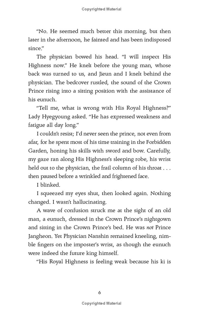 Joseon (Korea), 1758. There are few options available to illegitimate daughters in the capital city, but through hard work and study, eighteen-year-old Hyeon has earned a position as a palace nurse. All she wants is to keep her head down, do a good job, and perhaps finally win her estranged father's approval.