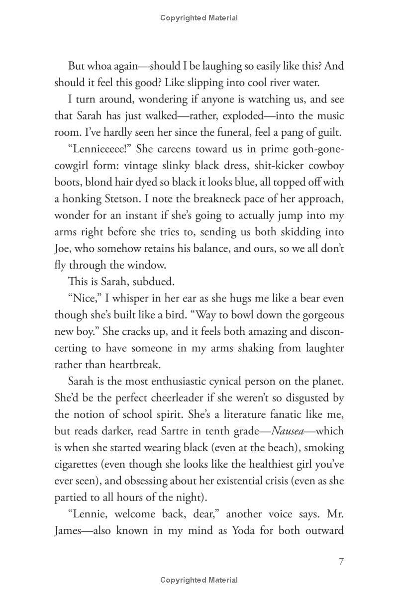 Adrift after her sister Bailey’s sudden death, Lennie finds herself torn between quiet, seductive Toby—Bailey’s boyfriend who shares Lennie's grief—and Joe, the new boy in town who bursts with life and musical genius. Each offers Lennie something she desperately needs. One boy helps her remember. The other lets her forget. And she knows if the two of them collide, her whole world will explode.