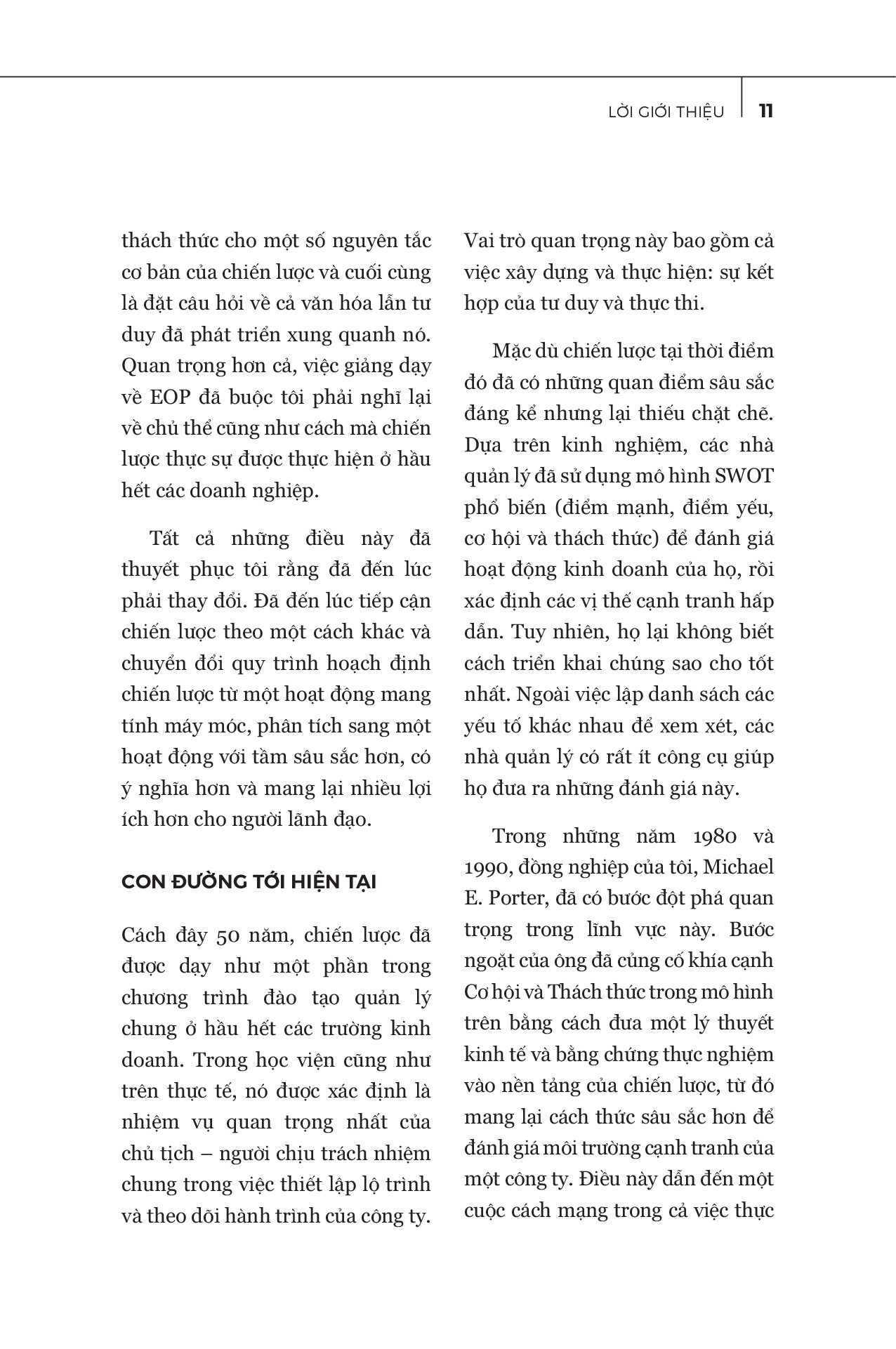 Cuốn sách phân tích sâu sắc về lý do tại sao nhà lãnh đạo cần phải là người làm chiến lược cho chính doanh nghiệp của mình. Tác giả cũng chỉ rõ rằng chiến lược không bao giờ kết thúc, nó là một quá trình tuần hoàn liên tục, bắt đầu với mục đích kinh doanh.
