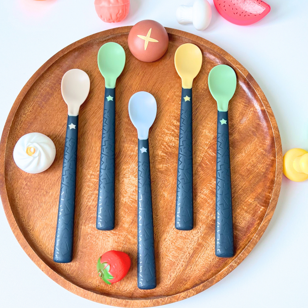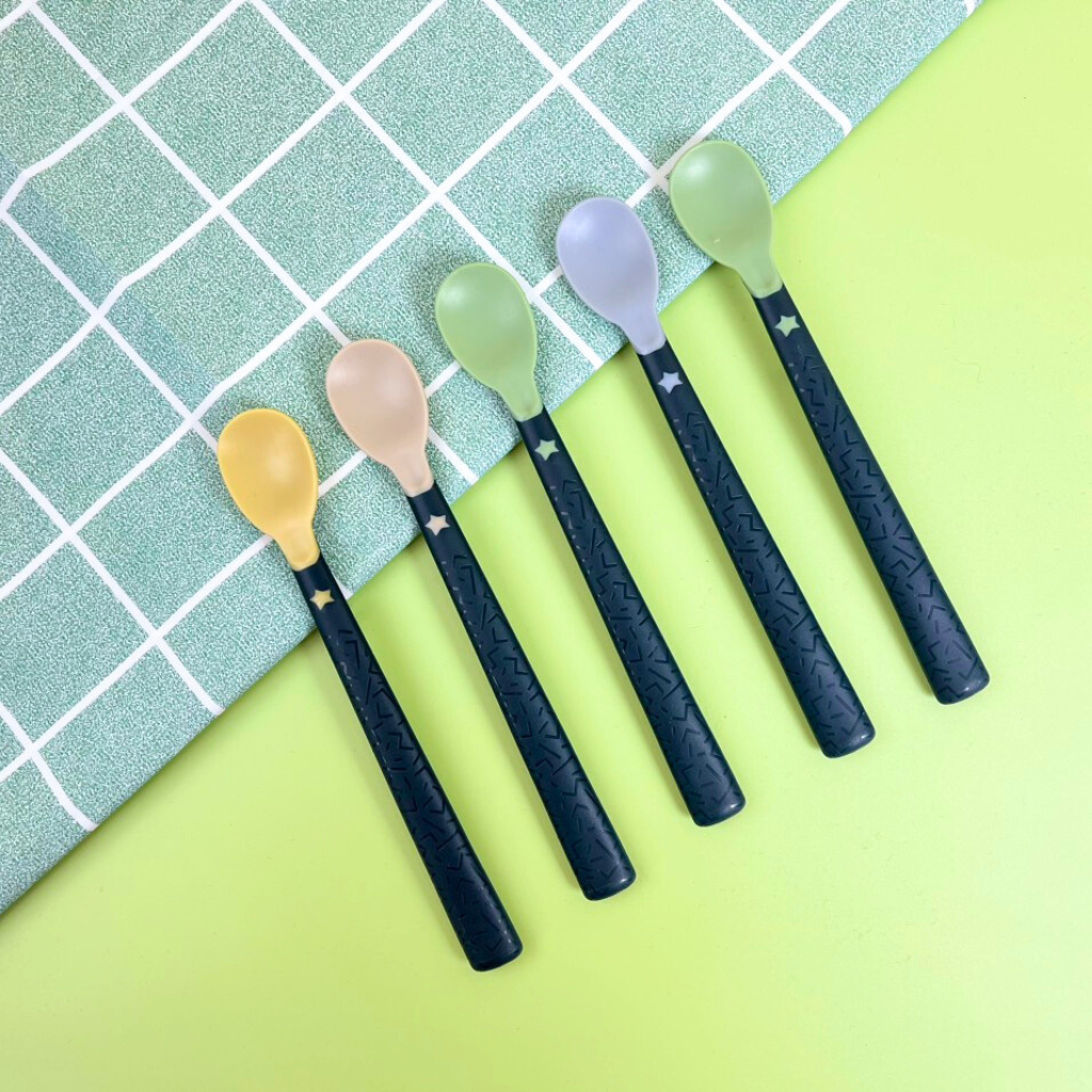 Cán thìa dài có bề mặt chống trượt giúp mẹ có thể để thìa trên thành bát mà không bị trượt rơi xuống