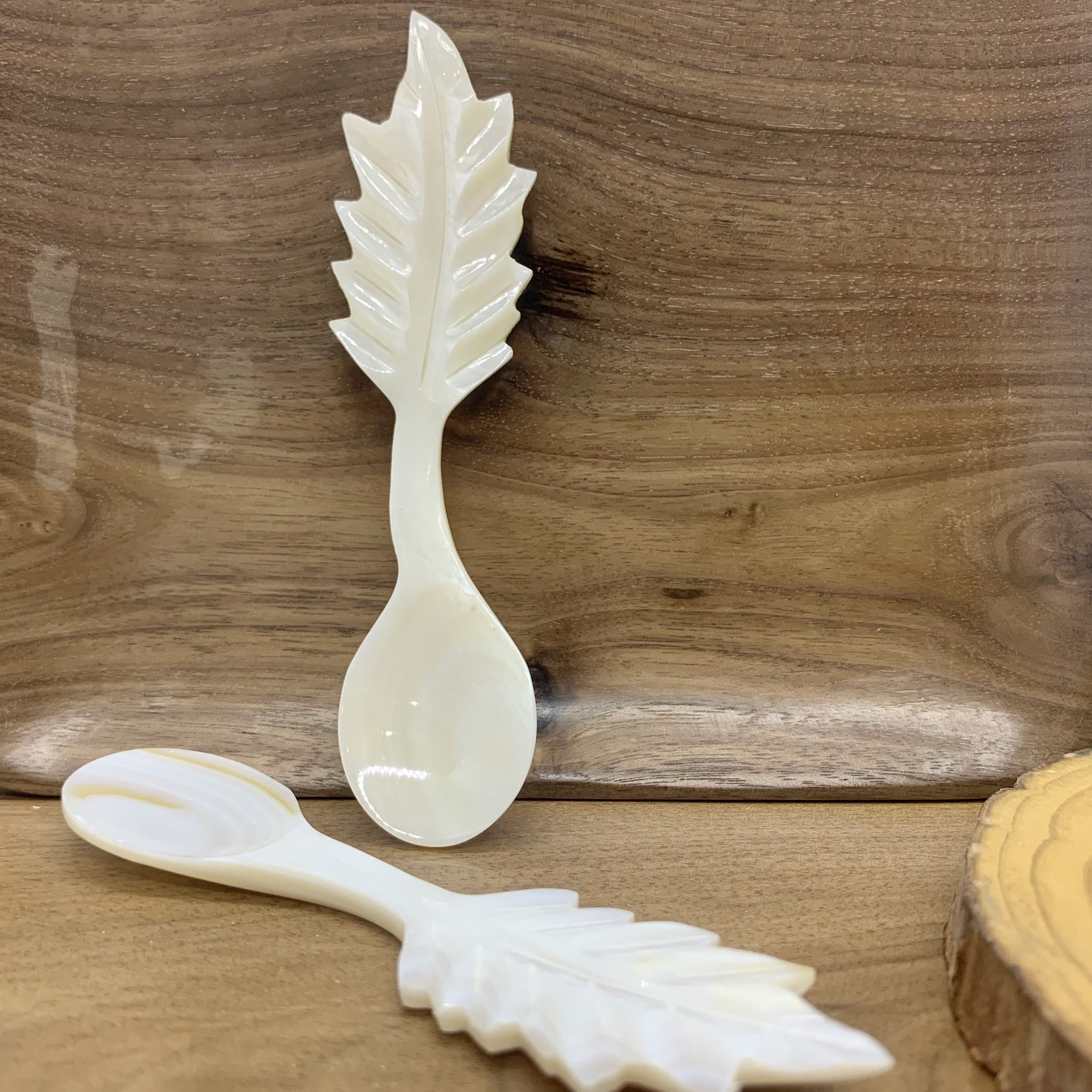 Phụ kiện thìa vỏ xà cừ vừa sử dụng chụp ảnh hoặc decor trang trí cho nhà hàng, món ăn.