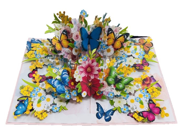 ✨Thiệp 3D Pop Up Hoa & Bướm Sắc Màu – Thiệp Nghệ Thuật, Thiệp Chúc Mừng, Sinh Nhật, Lãng Mạn