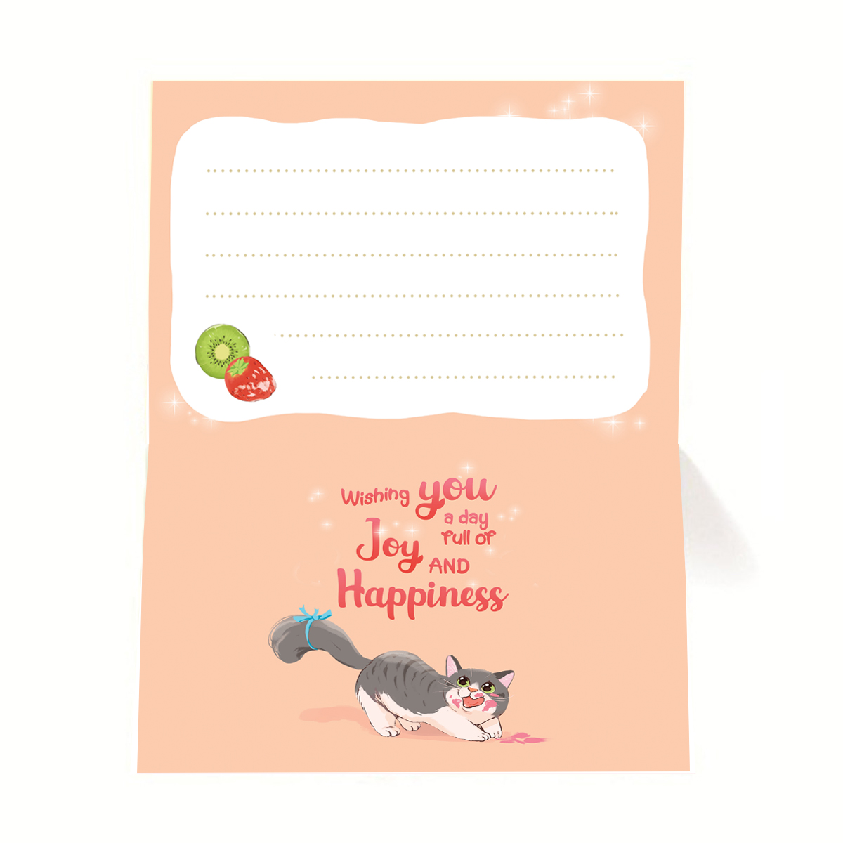 • Thiết kế bên trong in những hình ảnh dễ thương, xinh xắn để viết những nội dung gửi đến người thân, bạn bè, gia đì Tờ giấy viết nội dung in những họa tiết đơn giản, bắt mắt.