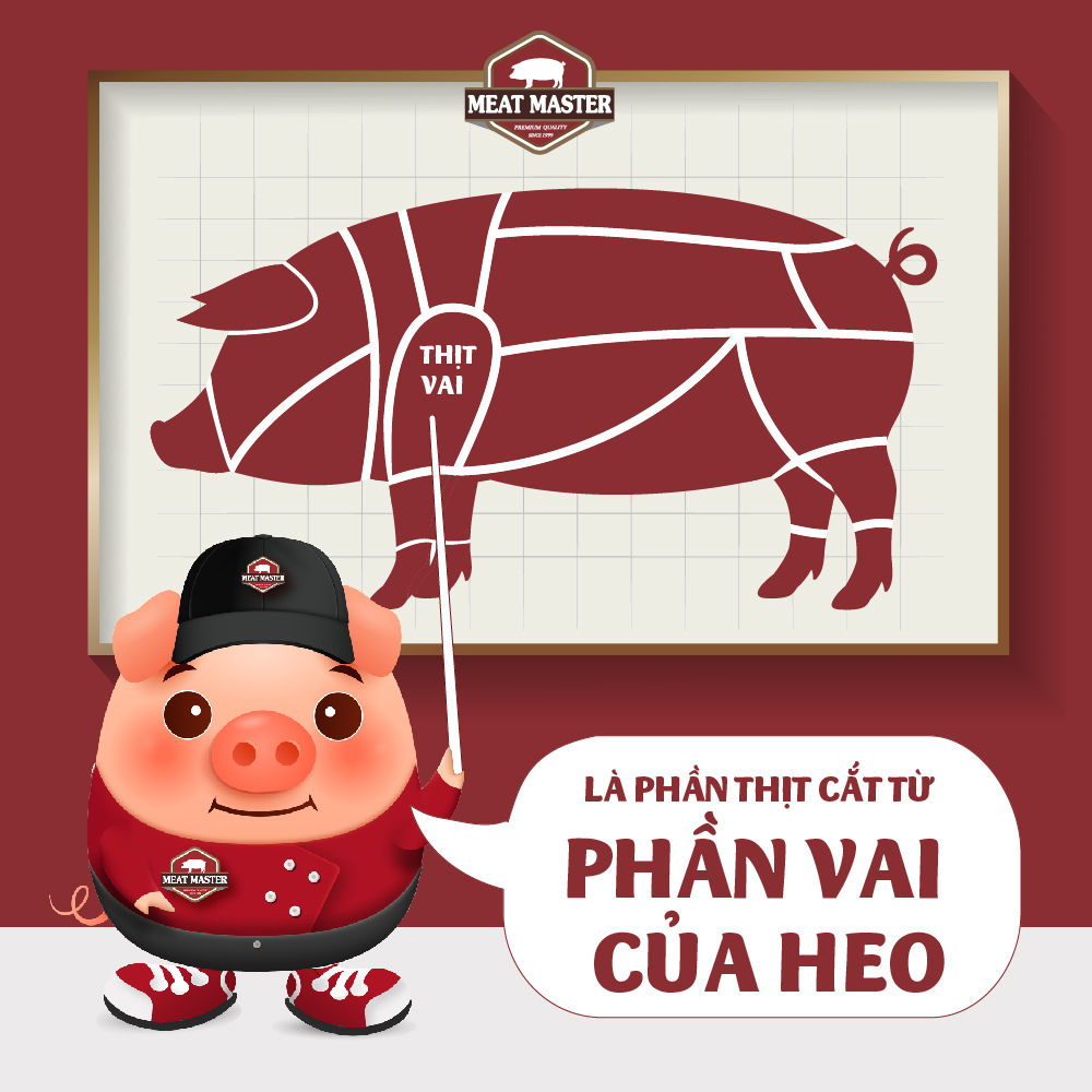 Với sản phẩm tươi sống, trọng lượng thực tế có thể chênh lệch khoảng 10%. Thịt vai Meat Master là phần thịt nằm ở khúc giữa cổ và vai heo. Đây là phần thịt heo