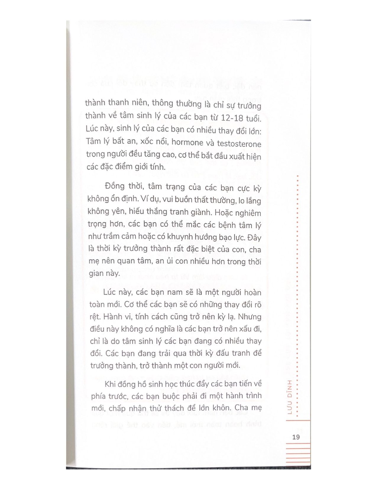 Hy vọng sách sẽ giúp phụ huynh đưa ra các hướng dẫn có hiệu quả và giáo dục con khoa học hơn, đồng thời giúp các bạn nam vui vẻ trải qua thời thanh xuân tươi đẹp.