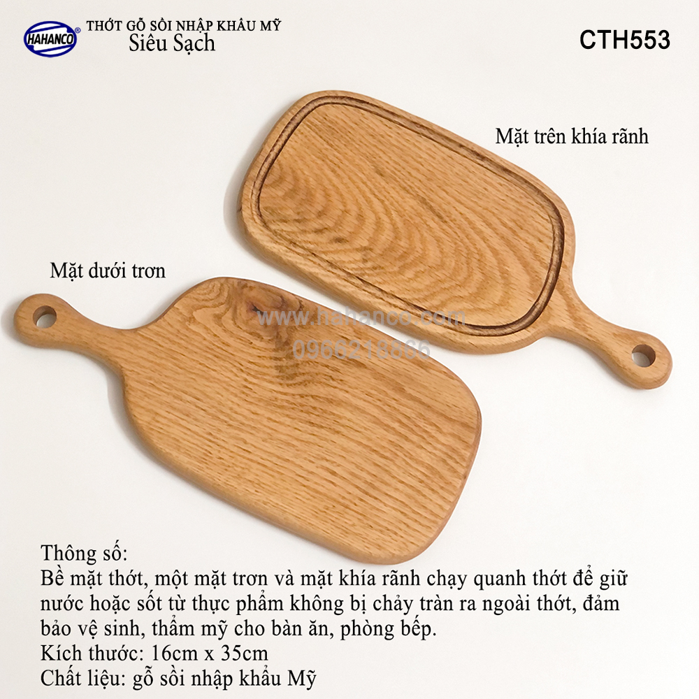 Thớt gỗ chữ nhật có lỗ treo - Size nhỏ 31 x 21 x 3.3 - Gỗ Đức Thành - 06471 - Đạt chứng nhận vệ sinh an toàn thực phẩm Thớt gỗ chữ