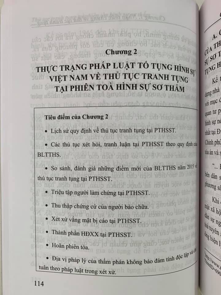 Tại Chương này, tác giả đã khái quát đặc điểm của mô hình tố tụng hình sự và thủ tục tranh tụng ở một số quốc gia như Hoa Kỳ, Pháp, Nhật Bản và Trung Quốc.