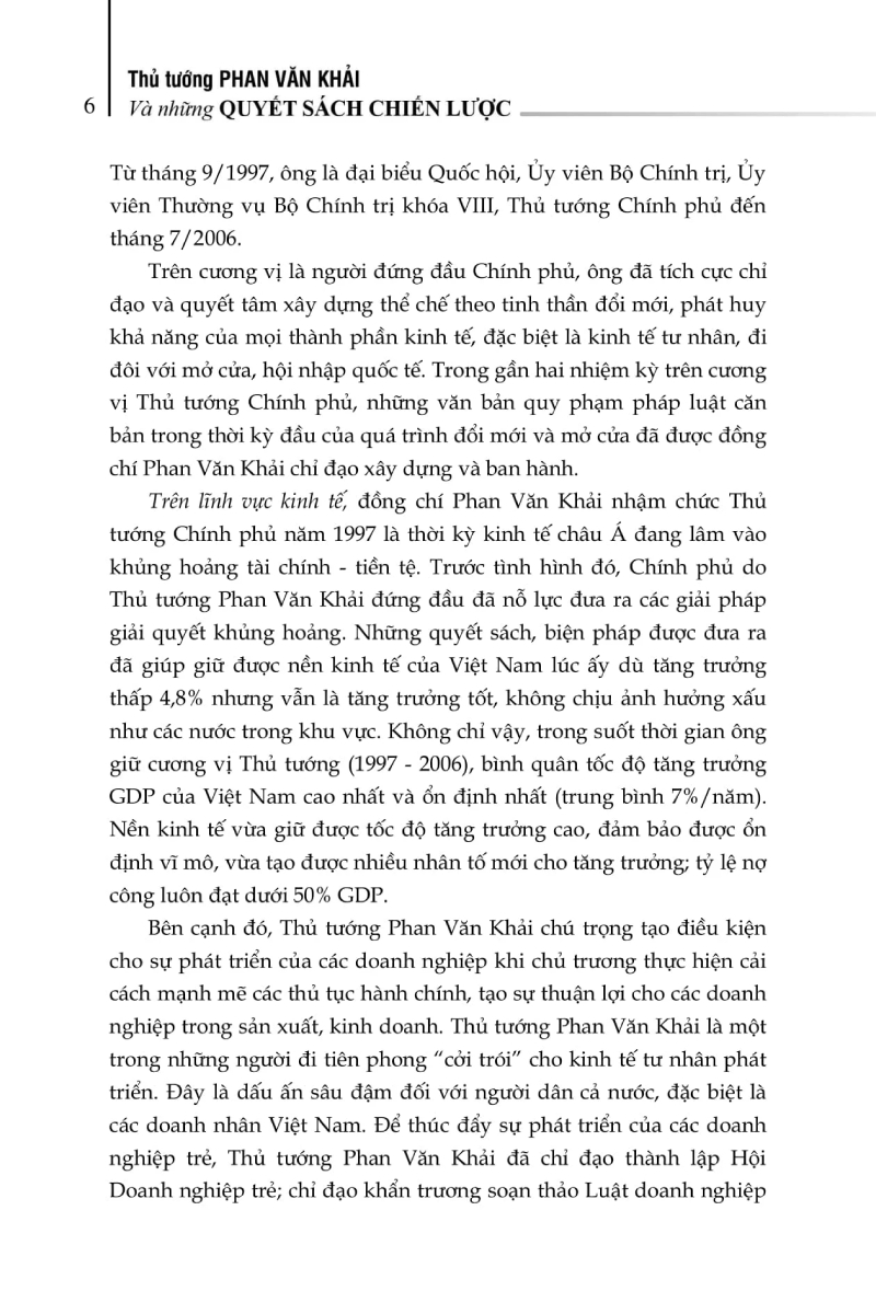 Nhân kỷ niệm 90 năm Ngày sinh Thủ tướng Phan Văn Khải, Trung tâm Lưu trữ quốc gia III, chúng tôi biên soạn cuốn sách Thủ tướng Phan Văn Khải và những quyết sách chiến lược (Tuyển chọn tài liệu lưu trữ) nhằm thể hiện những hoạt động nổi bật nhất của Thủ tướng Phan Văn Khải trong các lĩnh vực kinh tế, văn hóa – xã hội, giáo dục, ngoại giao qua các tài liệu, tư liệu được chọn lọc từ lưu trữ quốc gia.