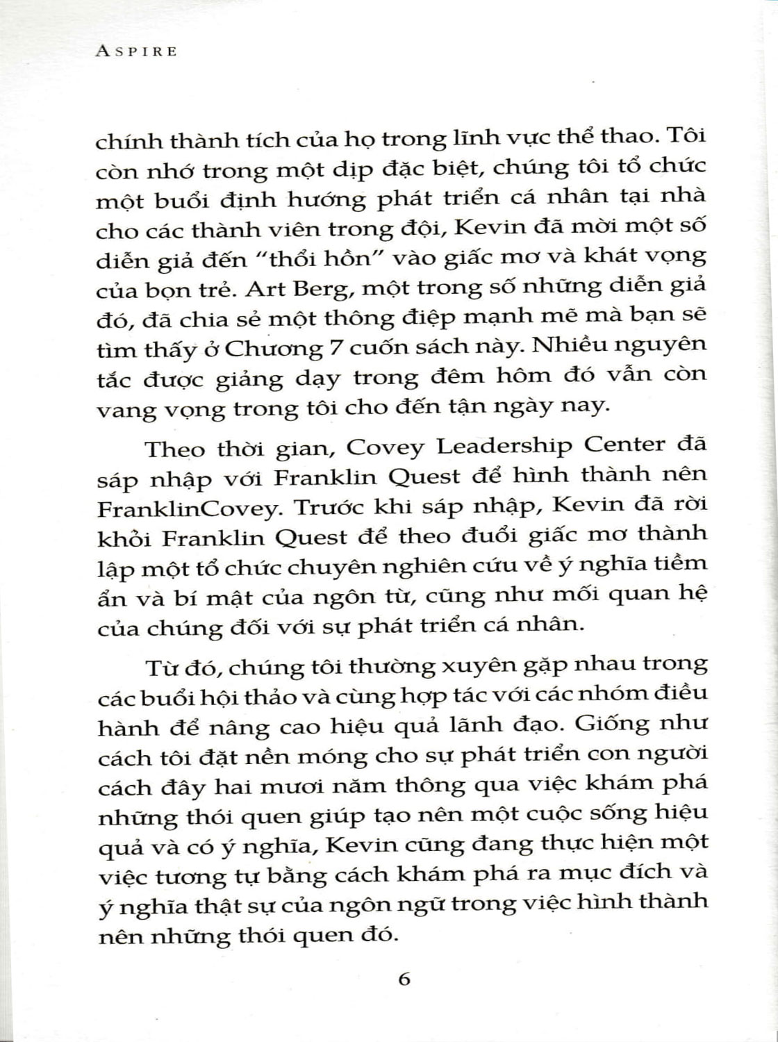 Giống như sự vận hành của bánh xe, các chương này phản ánh phạm vi ảnh hưởng của bạn được mở rộng từ trục bên trong, sau đó lan rộng ra để chi phối sự chuyển động của toàn bộ bánh xe. Chương cuối cùng – “Integrity” – có nghĩa là toàn vẹn hoặc hoàn chỉnh – sẽ hoàn thiện toàn bộ bánh xe phát triển này. Bạn có thể dễ dàng đọc hết cuốn sách này chỉ trong một lần. Bạn cũng có thể chọn riêng bất cứ chương nào bạn cho là phù hợp với mình và chậm rãi khám phá chiều sâu của nó một cách độc lập. Dù bằng cách nào thì cuốn sách vẫn sẽ tiết lộ những điểm mấu chốt giúp bạn khám phá ra tiềm năng thật sự ẩn bên trong con người bạn.