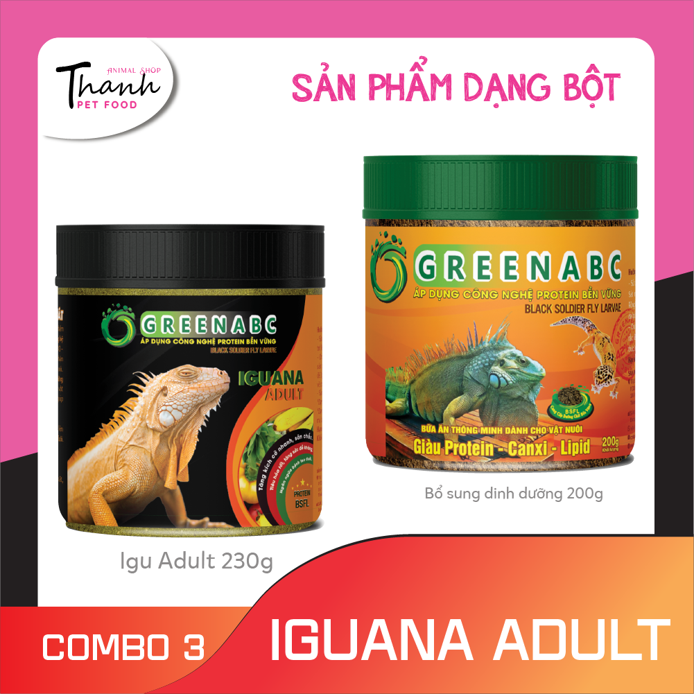GREENABC - THỨC ĂN IGUANA TRƯỞNG THÀNH - Rồng Nam Mỹ trưởng thành từ 1m trở lên GREENABC là thức ăn cao cấp dành cho Iguana Trưởng Thành - Rồng Nam Mỹ Trưởng Thành. Đặc
