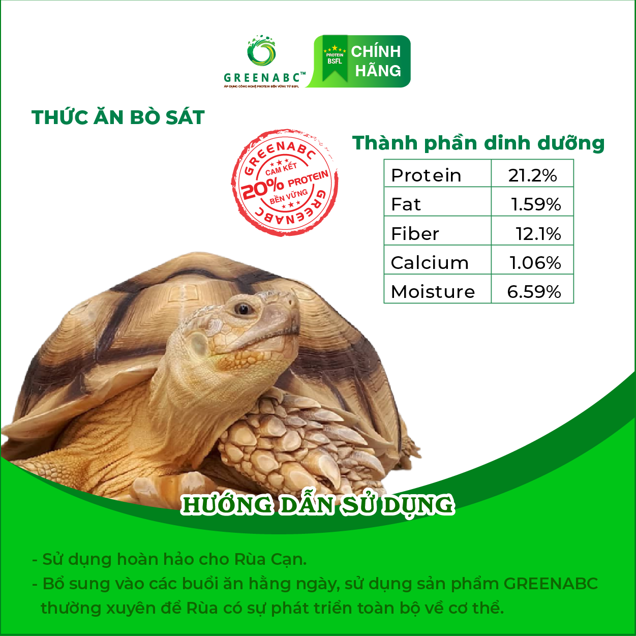 GREENABC - THỨC ĂN RÙA CẠN 100% TỪ THỰC VẬT - HÀM LƯỢNG PROTEIN 20% GREENABC là thức ăn cao cấp dành cho các loại RÙA CẠN. Đặc biệt sản phẩm GREENABC được sản xuất