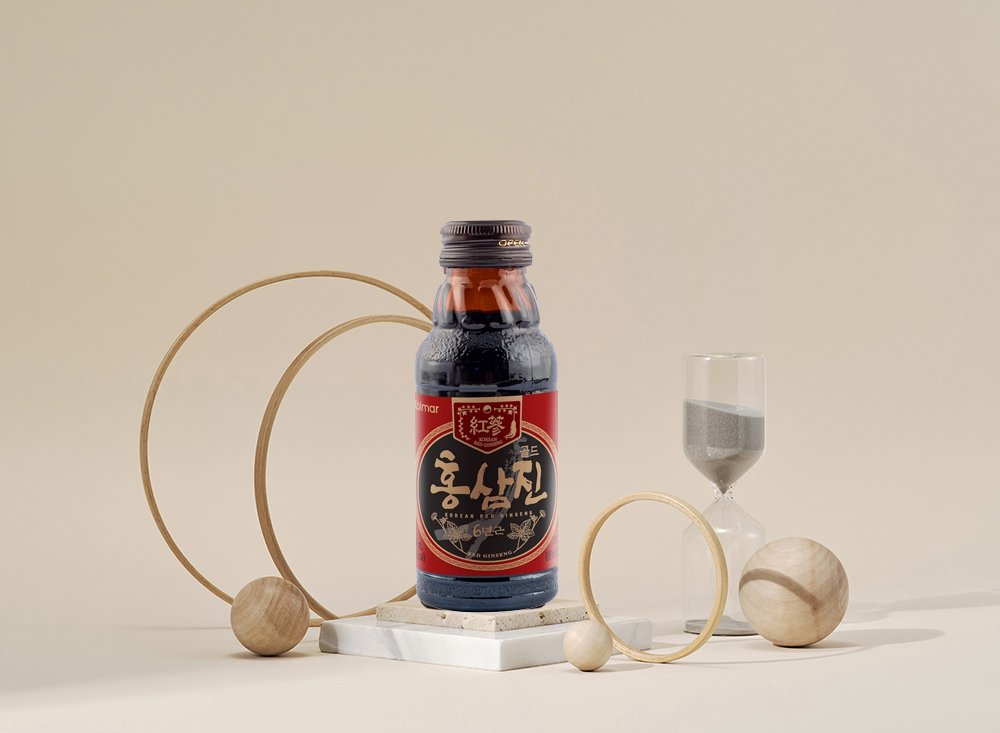 Thành phần Chiết xuất hồng sâm (Rg1, Rb1, Rg3 11mg/g, thành phần rắn 60%) chiếm 5,4%, nước tinh khiết, chiết xuất dâu tây, mật ong, chất xơ hòa tan, hương vị sữa chua tự nhiên,