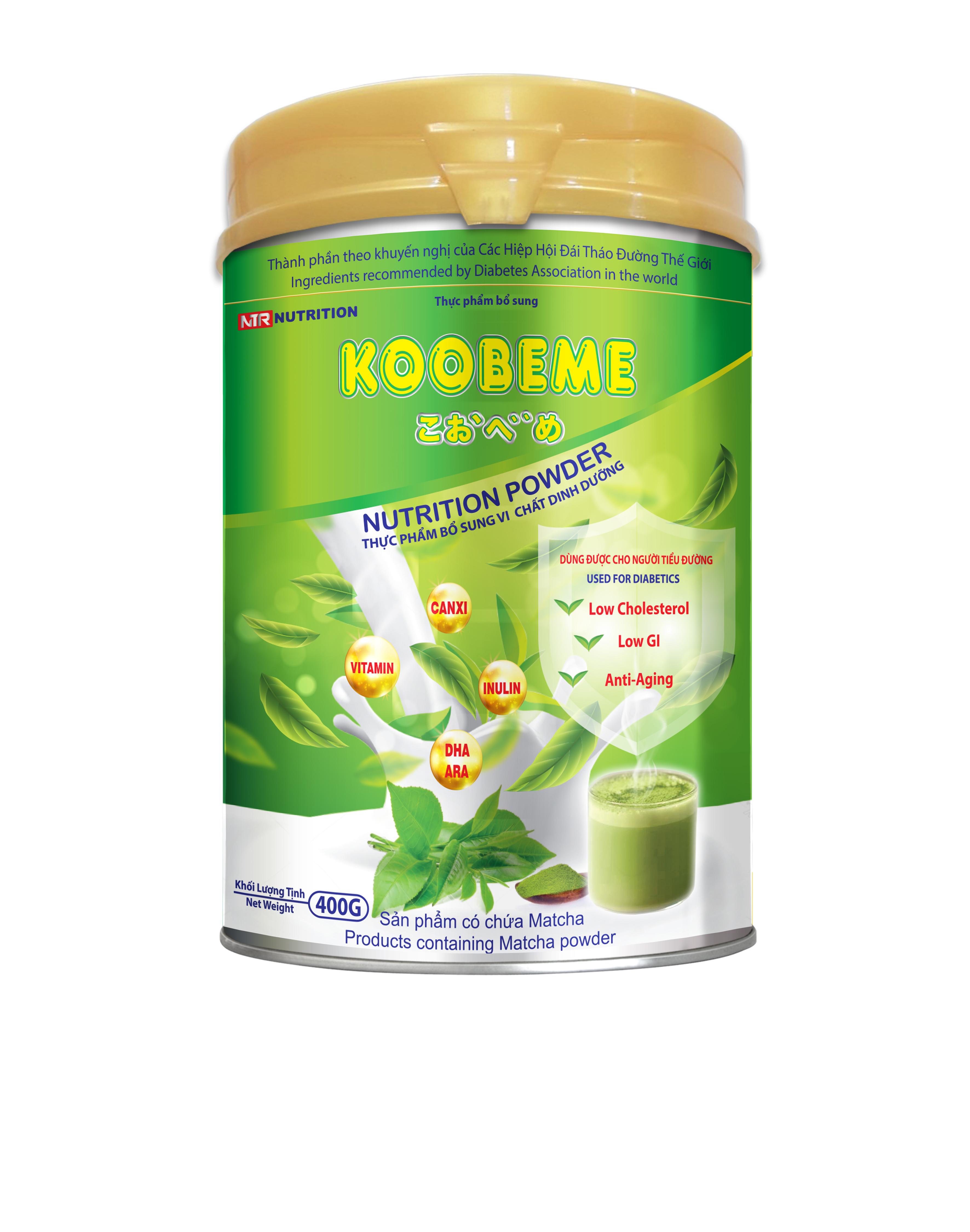 THỰC PHẨM BỔ SUNG VI CHẤT DINH DƯỠNG NUTRITION POWDER Thành phần có chứa MATCHA dùng cho người muốn giảm cân hoặc tiểu đường KOOBEME Thành phần: Sữa bột tách béo (Skim milk powder), Bột trà