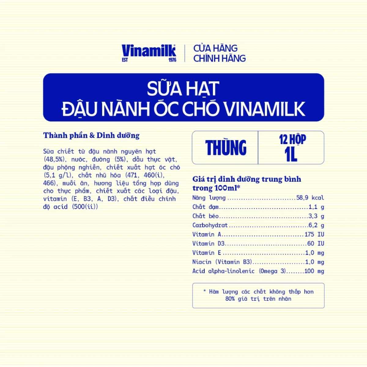 ✨Thùng 12 hộp Sữa đậu nành Vinamilk hạt Óc chó 1L