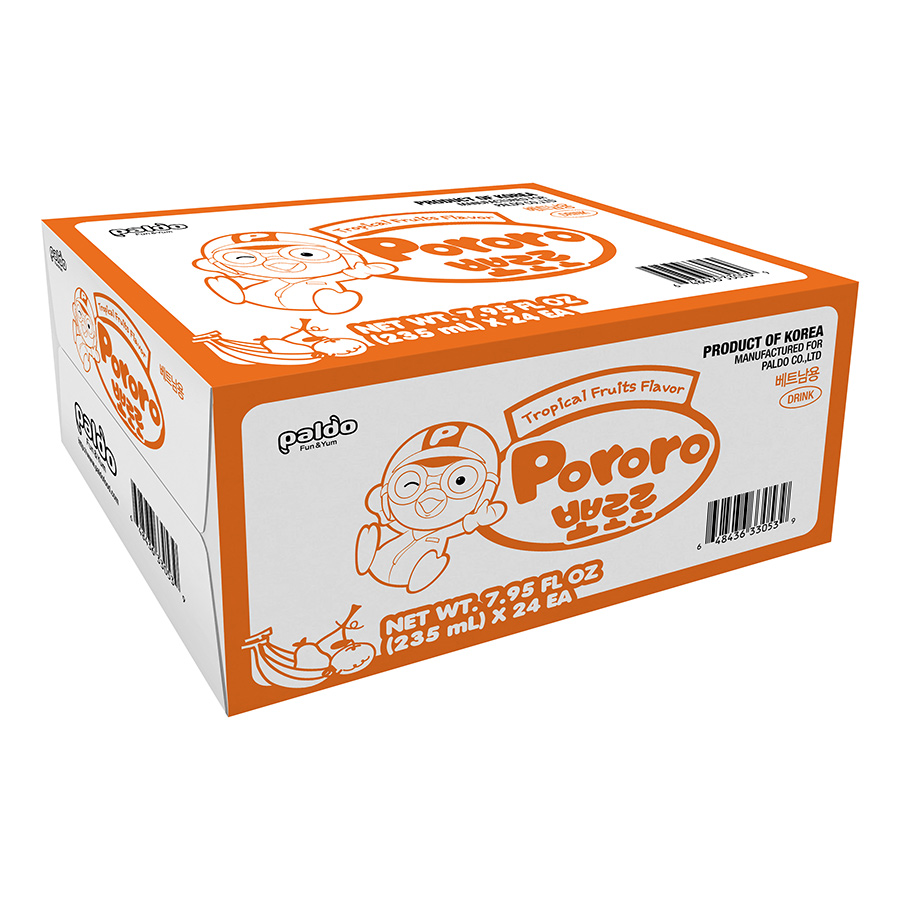 ✨Thùng 24 Chai Nước Uống Pororo Hương Vị Trái Cây Nhiệt Đới 235ml