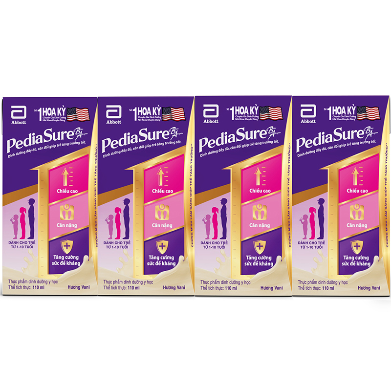 - Sữa Nước Pediasure Vani 110ml dành cho trẻ 1-10 tuổi, bao gồm trẻ tăng trưởng kém (nhẹ cân, thấp còi, suy dinh dưỡng, hay ốm), trẻ biếng ăn, trẻ có nhu cầu năng lượng