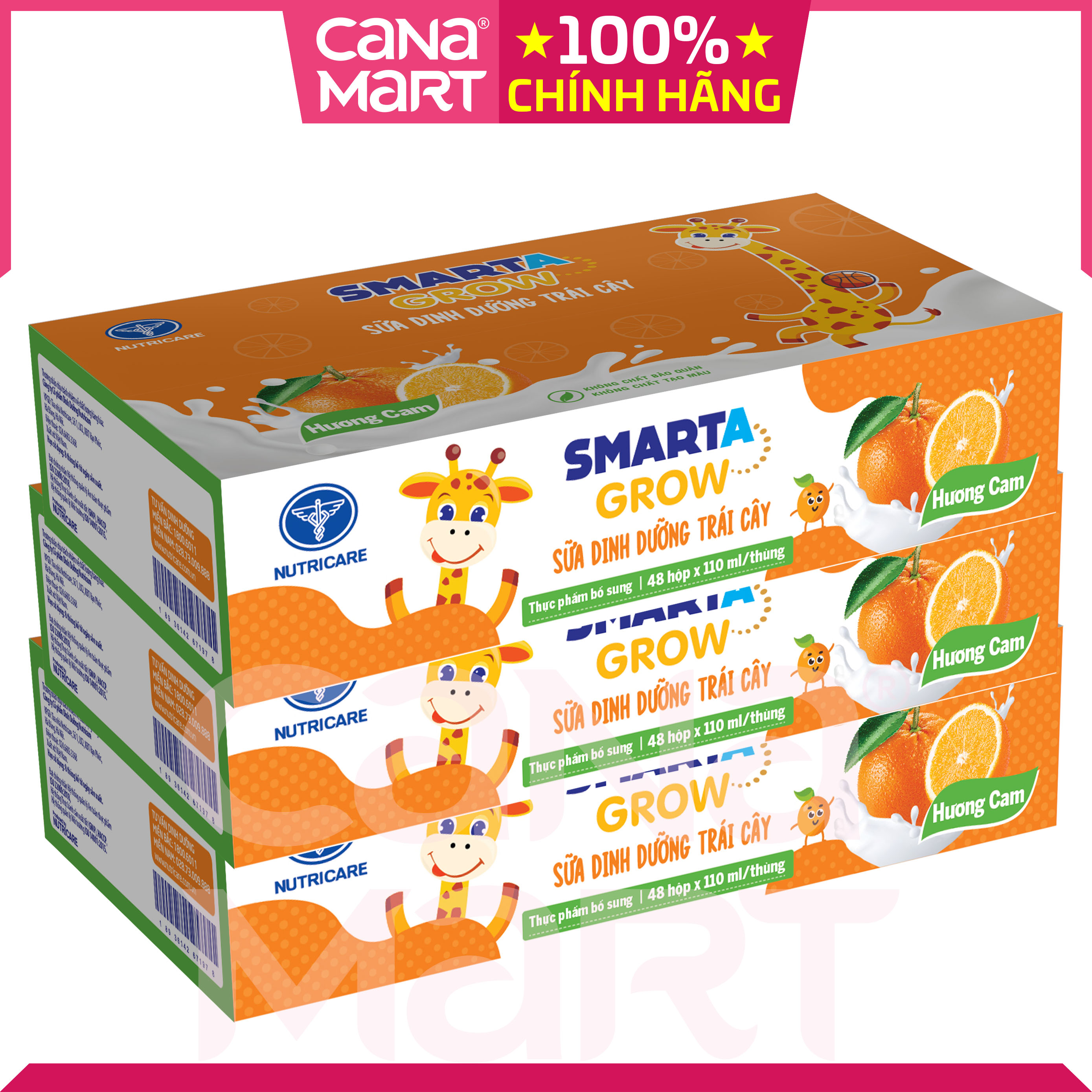 ✨Thùng sữa nước trái cây Smarta Grow (vị cam) giúp trẻ tăng trưởng chiều cao, phát triển não bộ, dinh dưỡng cho trẻ thấp còi (48 hộp x 110ml)