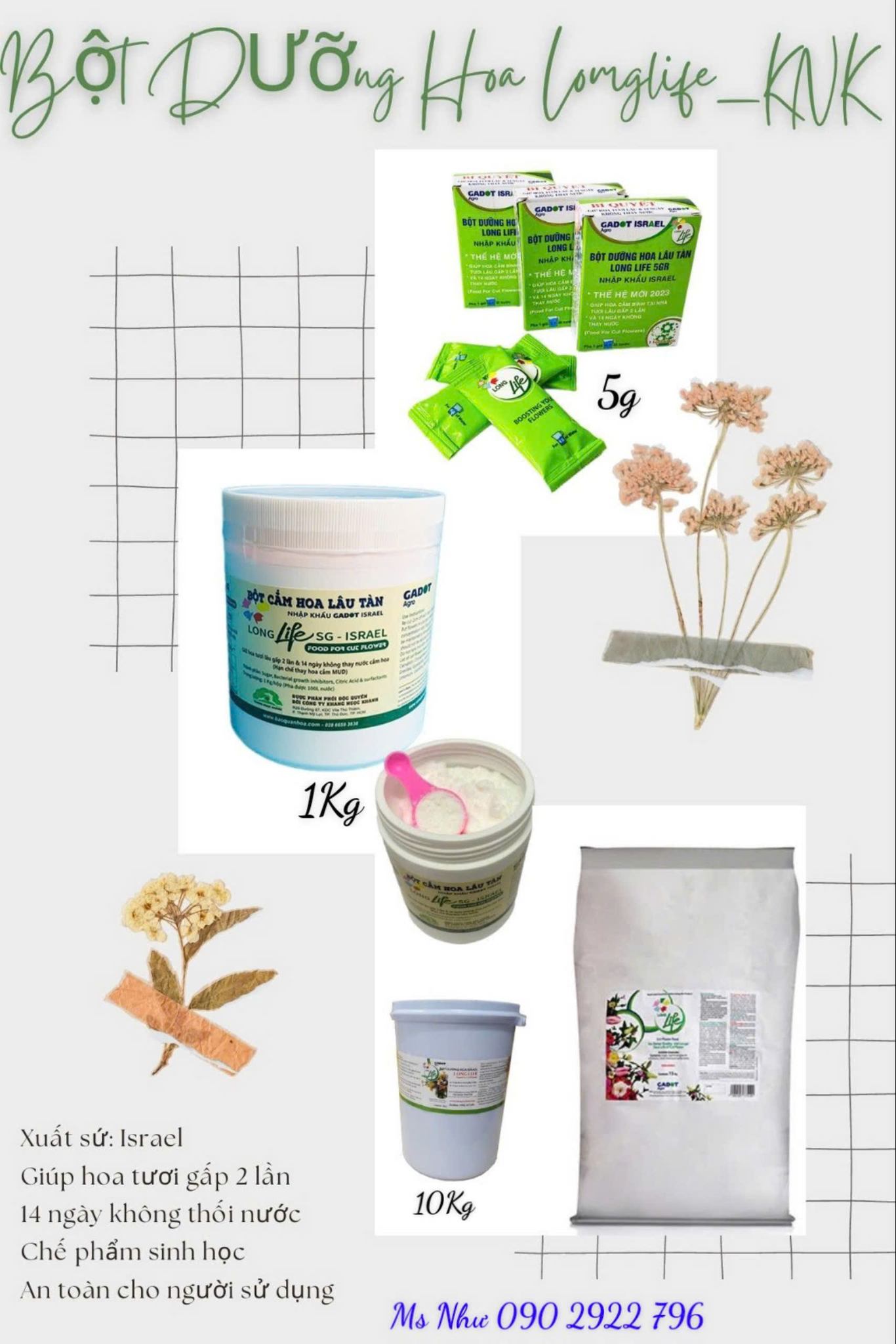 BỘT DƯỠNG HOA DÀNH RIÊNG CHO SHOP HOA Giúp bảo quản hoa tươi lâu gấp 2 LẦN và 14 ngày không THAY nước - Longlife SG của Israel Nhập khẩu từ Israel: Công nghệ