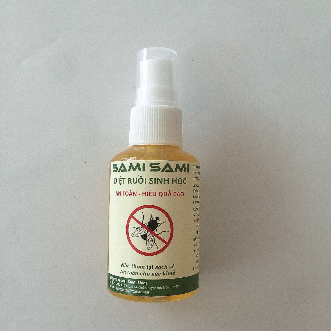 SAMI SAMI - Thuốc diệt ruồi sinh học an toàn Thành phần diệt ruồi SAMI SAMI: Hương cam, hoạt chất sinh học, nước, phụ gia bảo quản. An toàn: không mùi, không ảnh hưởng đến sức khoẻ của con người. Công dụng thuốc diệt ruồi sinh học SAMI