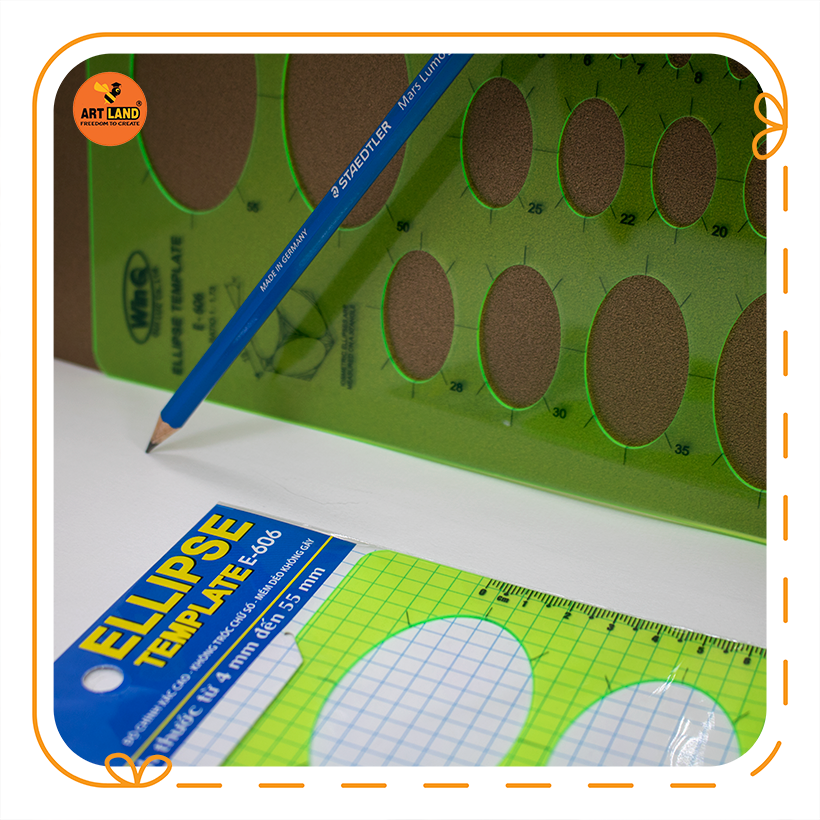Thước vẽ Ellipse Template - WinQ E606 Thước Elip làm bằng nhựa dẻo chất lượng cao, độ đàn hồi cao, Thước Elip có vạch kẻ chia độ và chia kích thước chính xác. Thước Elip
