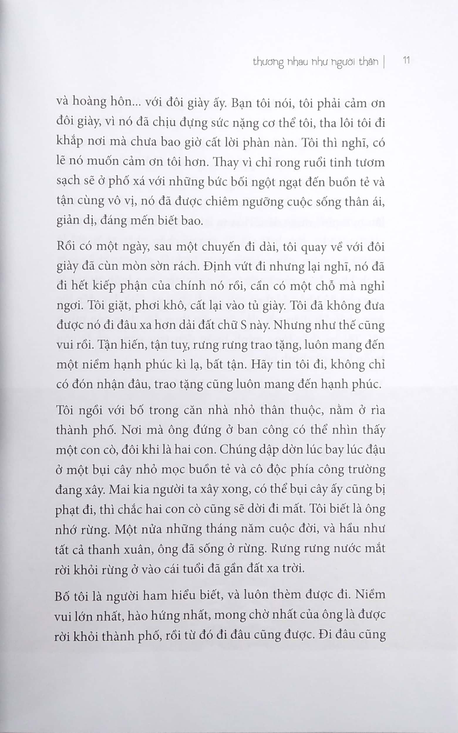 Khi đọc xong, tôi đã nói với Thúy rằng, chính là khi đi đến tận cùng cái riêng, ta lại chạm vào cái chung của tất thảy mọi người. Tôi tin rằng những trang văn của Thúy sẽ chạm vào trái tim của tất cả những độc giả yêu mến cái đẹp, bởi những điều Thúy viết ra được bắt nguồn từ thẳm sâu một niềm yêu sống, một lòng biết ơn cuộc đời. Những trang văn không chỉ có hiềm vui rạng rỡ mà đôi khi có cả những vũng lầy, những bất trắc khốn khổ, những cay đắng gục ngã đớn đau. Thế nhưng sau hết thì con người vẫn đứng lên mà bước tiếp.