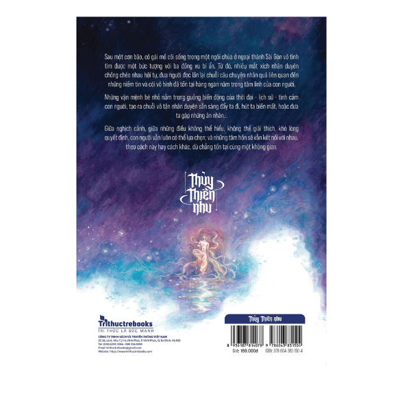 Thông tin chi tiết Mã hàng 8936107814078 Tên Nhà Cung Cấp CÔNG TY TNHH SÁCH & TRUYỀN THÔNG VIỆT NAM Tác giả Quang Nguyên H-ng NXB Hội Nhà Văn Năm XB 2024 Ngôn Ngữ Tiếng Việt Trọng lượng (gr) 360 Kích Thước Bao Bì 24 x 16 x 1.7 cm Số trang 346 Hình thức Bìa Mềm     Mô tả sản phẩm Thủy Thiên Nhu   Có câu: “Tu thiện, vẫn không quên sân hận, chỉ có thể ở cõi thiên ma A-tu-la” chính là để nói về đặc điểm này của các thiên ma, đó là “Có hận không quên, có ơn báo đáp”.   Thủy Thiên Nhu là một cuốn tiểu thuyết chuyển sinh mang màu sắc kỳ ảo, pha trộn giữa thế giới hiện thực và thế giới tâm linh độc đáo của tác giả Quang Nguyên H-ng. Câu chuyện kể về một mối duyên truyền kiếp kéo dài qua hàng nghìn năm, qua bao nhiêu kiếp người giữa một cô gái và một thiên ma. Hai người dù ở kiếp nào, dưới hình dạng cơ thể như thế nào cũng vẫn tìm đến nhau, cùng nhau đi qua kiếp sống, cùng hạnh phúc, cùng đau khổ và rồi phải tạm biệt nhau để gặp lại trong kiếp khác.   Tham, sân, si là bản tính của con người. Càng có lại càng muốn nhiều hơn. Nhân quả như một chuỗi tuần hoàn khiến Thủy - nhân vật chính - phải tìm đường hóa giải cho những mối duyên tiền kiếp để tránh họa cho mình.   Tầng tầng lớp lớp các nhân vật, sự kiện đan quyện, bện xoắn vào nhau như một sợi dây chão khổng lồ. Tình tiết truyện lắt léo mà không rối, xoắn xuýt mà không lẫn vào nhau. Mỗi câu chuyện, mỗi nhân vật đều có nét riêng, tính cách nhân vật sắc sảo, con đường đi rõ ràng, mạch lạc. Hiện thực và tâm linh đan xen nhưng vẫn hòa hợp. Thuỷ tuy vẫn có nét của các nhân vật tiền kiếp trong quá khứ nhưng cũng có nét nhanh nhẹn, hoạt bát, ngây thơ, đáng yêu, tinh nghịch của một cô bé trong xã hội hiện đại. Nhân vật nam thời hiện đại thấp thoáng nét ung dung, tiêu dao, tự tại trong quá khứ.   Thủy Thiên Nhu ngoài kể về một mối duyên truyền kiếp, còn mang đến cho người đọc rất nhiều những kiến thức, thông tin về cuộc sống của người xưa, về những cuộc chiến tranh, về những nhiễu nhương của thời cuộc. Bao trùm lên tất cả là sự khéo léo kết hợp kiến thức Kinh Dịch vào cốt truyện. Các cuộc trừ tà, gieo quẻ, luận giải, ứng dụng trong cuộc sống của các nhân vật trong truyện… không gây cảm giác khó hiểu, mà giúp xây thêm nhiều tầng nghĩa cho câu chuyện.   Thủy Thiên Nhu là một hành trình dài trải qua bao kiếp người của hai kẻ có mối duyên vô tận, cuối cùng cũng được ở bên nhau. Bởi: “Chờ đợi với lòng tin tưởng mãnh liệt, rồi đồng cỏ sẽ xanh và ngàn hoa sẽ nở.”   VÀI NÉT VỀ TÁC GIẢ   Quang Nguyên H-ng   Tốt nghiệp ngành Đông phương học, Đại học Khoa học xã hội và Nhân văn TP. HCM năm 2003, tác giả Quang Nguyên H-ng từng là cộng tác viên của vài tờ báo như Hoa học trò, Áo trắng… trước khi du học ở Pháp.   Sau này, cô viết bài cho các báo: Đoàn kết (Hội người Việt Nam tại Pháp), Tia sáng (Bộ Khoa học và Công nghệ), Quê hương, Khoa học phát triển, ELLE Việt Nam… cũng như dịch thuật với ba đầu sách đã được phát hành tại Việt Nam .