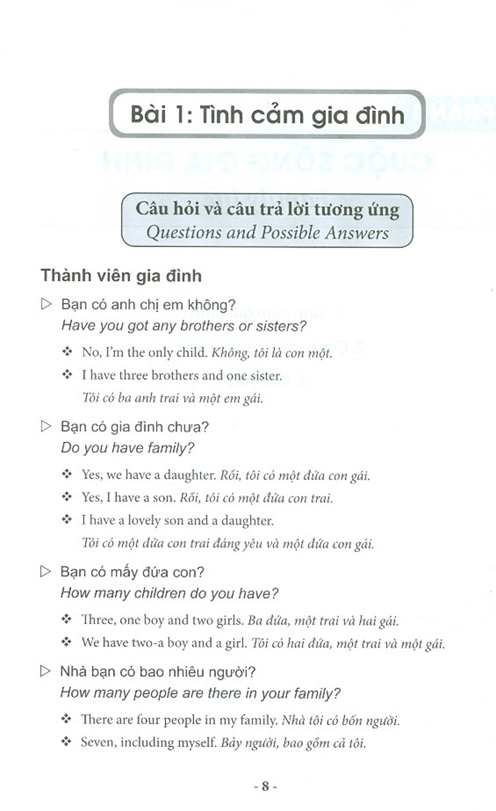 Sách có bố cục chặt chẽ, các mẫu câu đàm thoại đa dạng, được chọn lọc từ các tình huống giao tiếp thực tế, và có chú giải từ vựng rõ ràng. Hy vọng bộ sách này sẽ là cẩm nang quí báu cho bạn đọc trong việc học tập và sử dụng tiếng Anh.