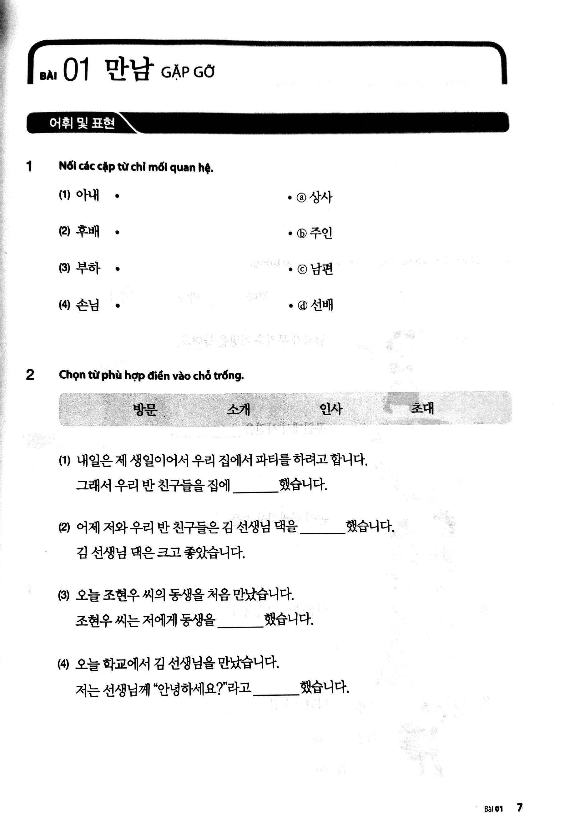 Giáo trình tiếng Hàn tổng hợp dành cho người Việt Nam – Sách bài tập sơ cấp 2