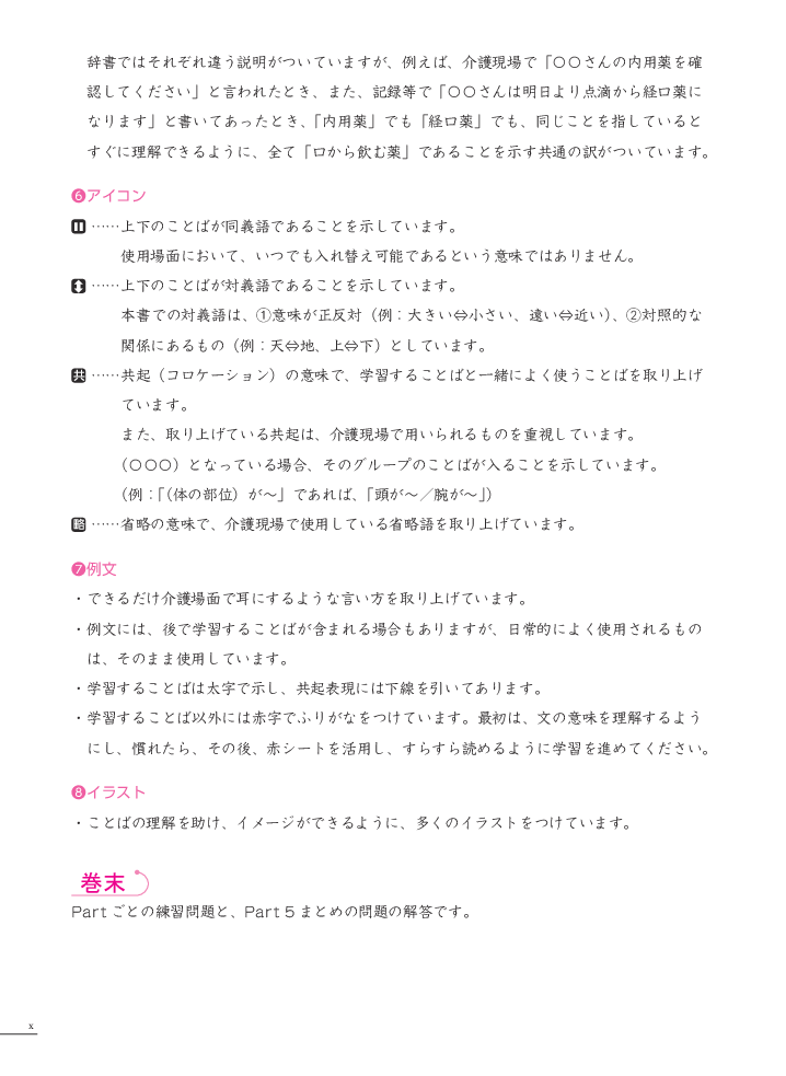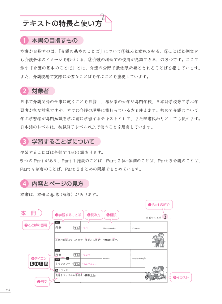 Nằm trong bộ sách Tiếng Nhật chuyên ngành điều dưỡng. Quyển "Từ vựng cơ bản" này là tổng hợp các từ vựng chuyên ngành điều dưỡng, kèm bản dịch Anh Việt và các câu ví dụ bám sát hiện trường làm việc thực tế. Giúp người học có cái nhìn tổng quát về ngành điều dưỡng. Có đính kèm tấm nhựa đỏ phục vụ việc tự học. Đây là giáo trình rất bổ ích cho những người đang học ngành điều dưỡng, hoặc muốn làm việc trong ngành điều dưỡng tại Nhật Bản.