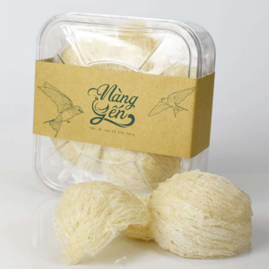 Nhặt sạch lông, tạp chất, và cho vào khuôn sấy quạt tự nhiên trong môi trường khô thoáng để đạt độ khô ráo chuẩn trước khi đóng gói. Với phương pháp làm sạch lông của Nàng Yến, sợi yến của tổ yến tinh chế vẫn còn giữ được mùi thơm nồng, đặc trưng của yến, tỉ lệ sợi yến giữ lại cao, được phơi sấy ở nơi thoáng đãng và khô ráo.