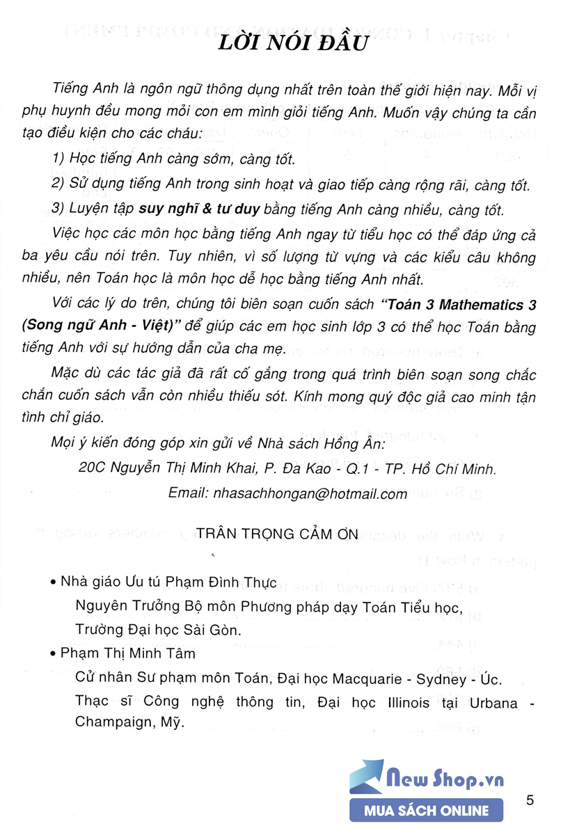 Toán 3 - Mathematics 3 (Song Ngữ Anh Việt) Tiếng Anh là ngôn ngữ thông dụng nhất trên toàn thế giới hiện nay. Mỗi vị phụ huynh đều mong mỏi con em mình giỏi tiếng Anh. Muốn vậy chúng tạo điều kiện cho các cháu: