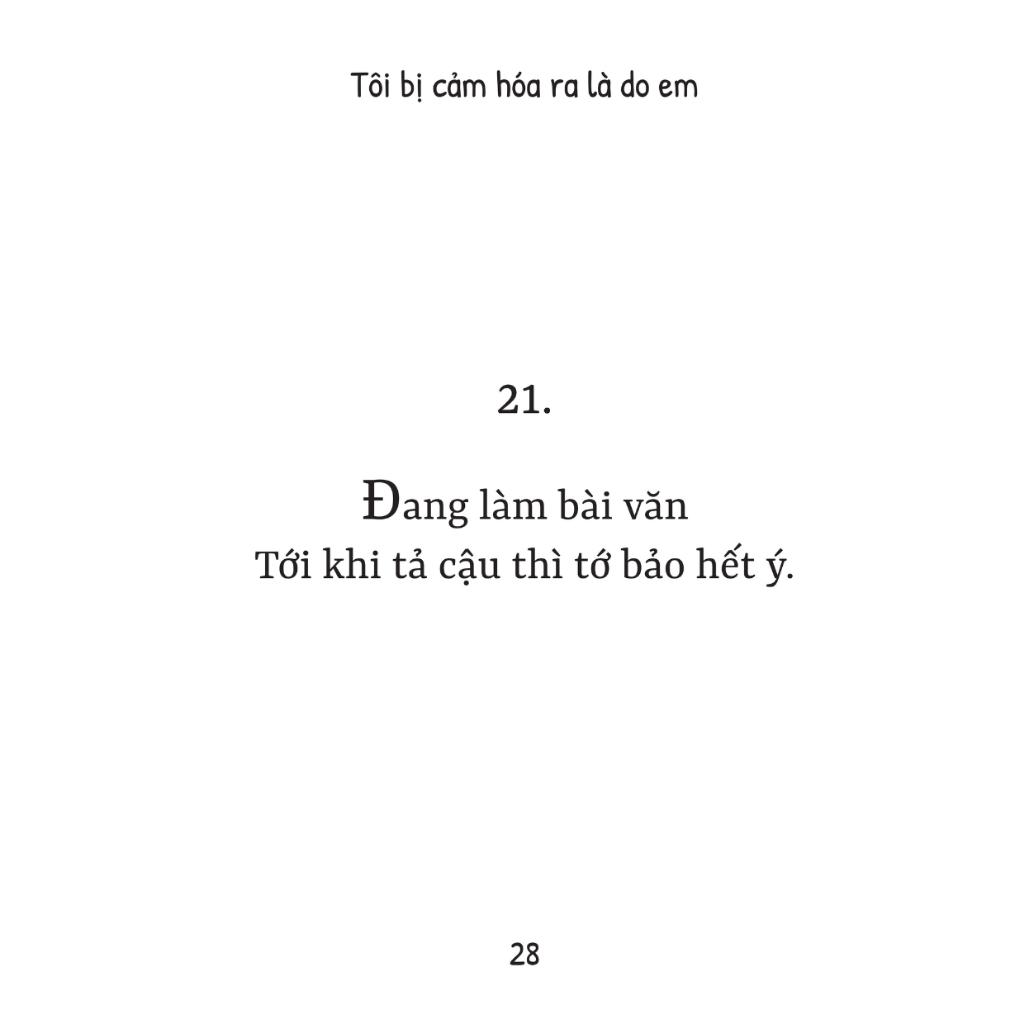 Với sự hài hước và thông minh trong cách chơi chữ, cuốn sách “Tôi bị cảm hóa ra là do em” chứa đựng những câu “rắc thính, gửi tình” siêu chất lượng: