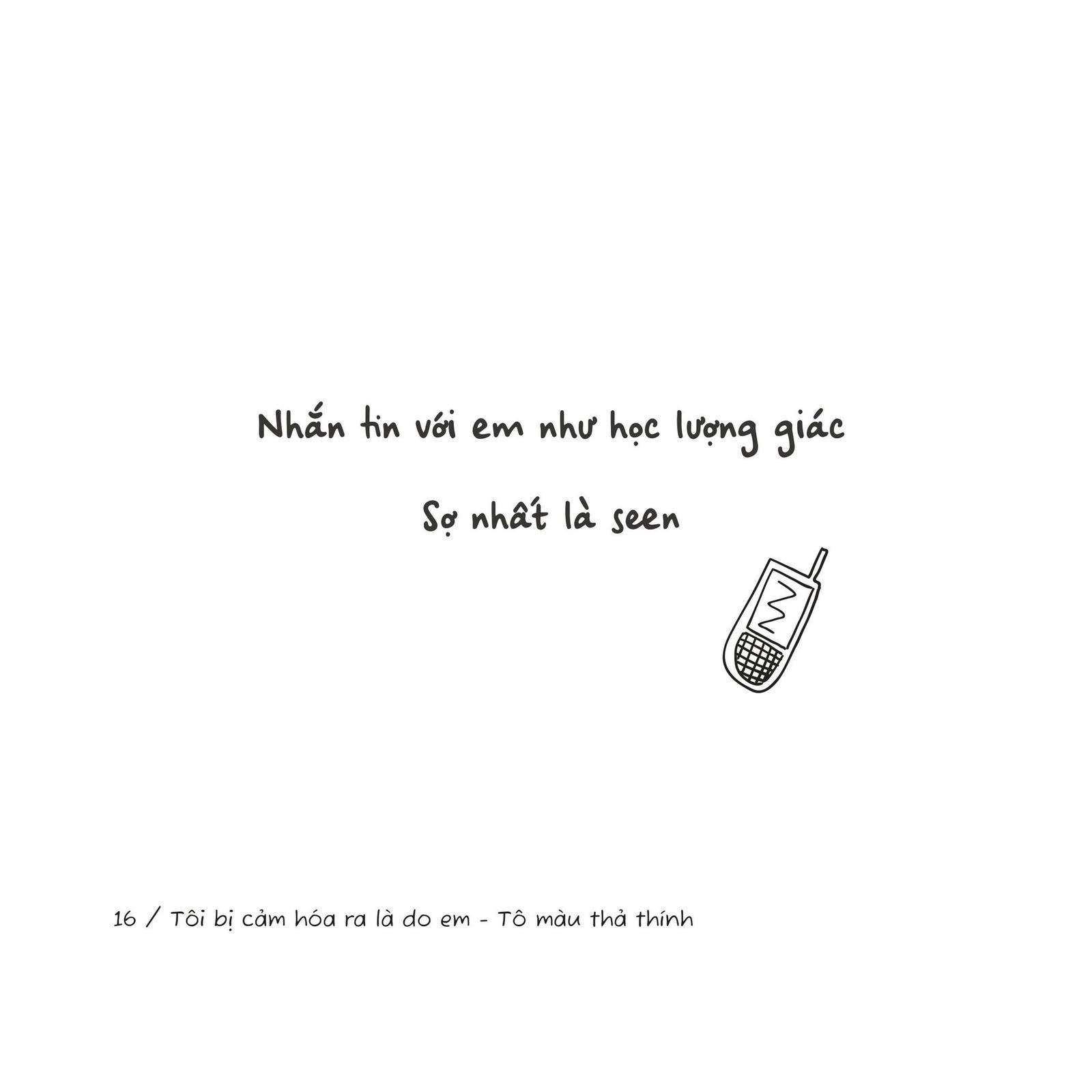 Phiên bản tô màu: “Tôi bị cảm hóa ra là do em - Tô màu thả thính” là sự kết hợp giữa những câu chơi chữ lém lỉnh của Phạm Duy Phúc và những bức tranh tinh nghịch của họa sĩ Thành Hà, họa sĩ trẻ gây ấn tượng với nét vẽ tinh nghịch, hài hước trong cộng đồng các bạn yêu vẽ minh họa.