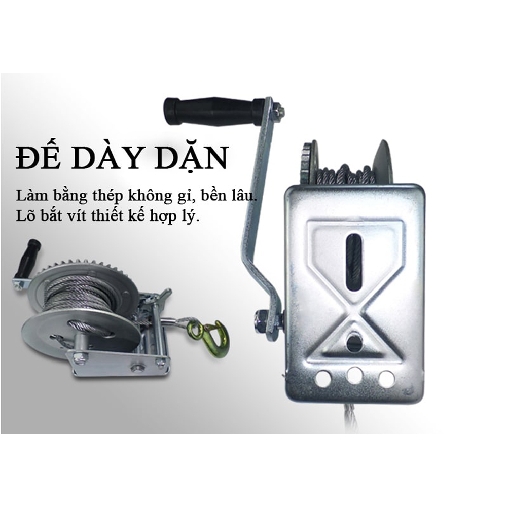 - Tời quay tay 2000LBS hoạt động không phụ thuộc vào nguồn điện nên có thể làm việc trong môi trường khắc nghiệt như tuyết, đầm lầy, sa mạc, bãi biển,...