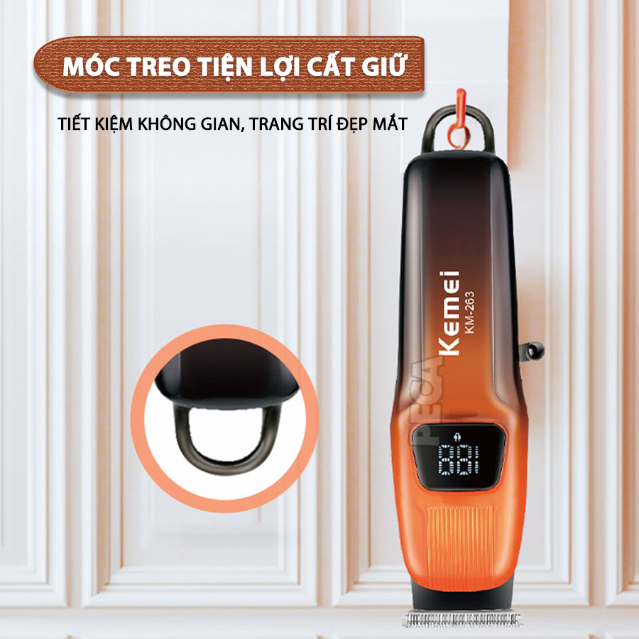 TÔNG ĐƠ CHẤN VIỀN KEMEI KM-263 MÀN HÌNH LCD, CÔNG SUẤT MẠNH 5W - CHÍNH HÃNG Máy cạo râu Kemei KM-263 là sản phẩm đa dụng, tích hợp nhiều tính năng vượt trội, giúp phái mạnh chăm sóc ngoại hình một cách dễ dàng và hiệu quả. Phù hợp sử dụng cá nhân, salon tiệm tóc dùng để cạo đầu, chấn viền, khắc tattoo tóc, tạo kiểu,... ƯU ĐIỂM NỔI BẬT :     1/ Ngoại quan sản phẩm: