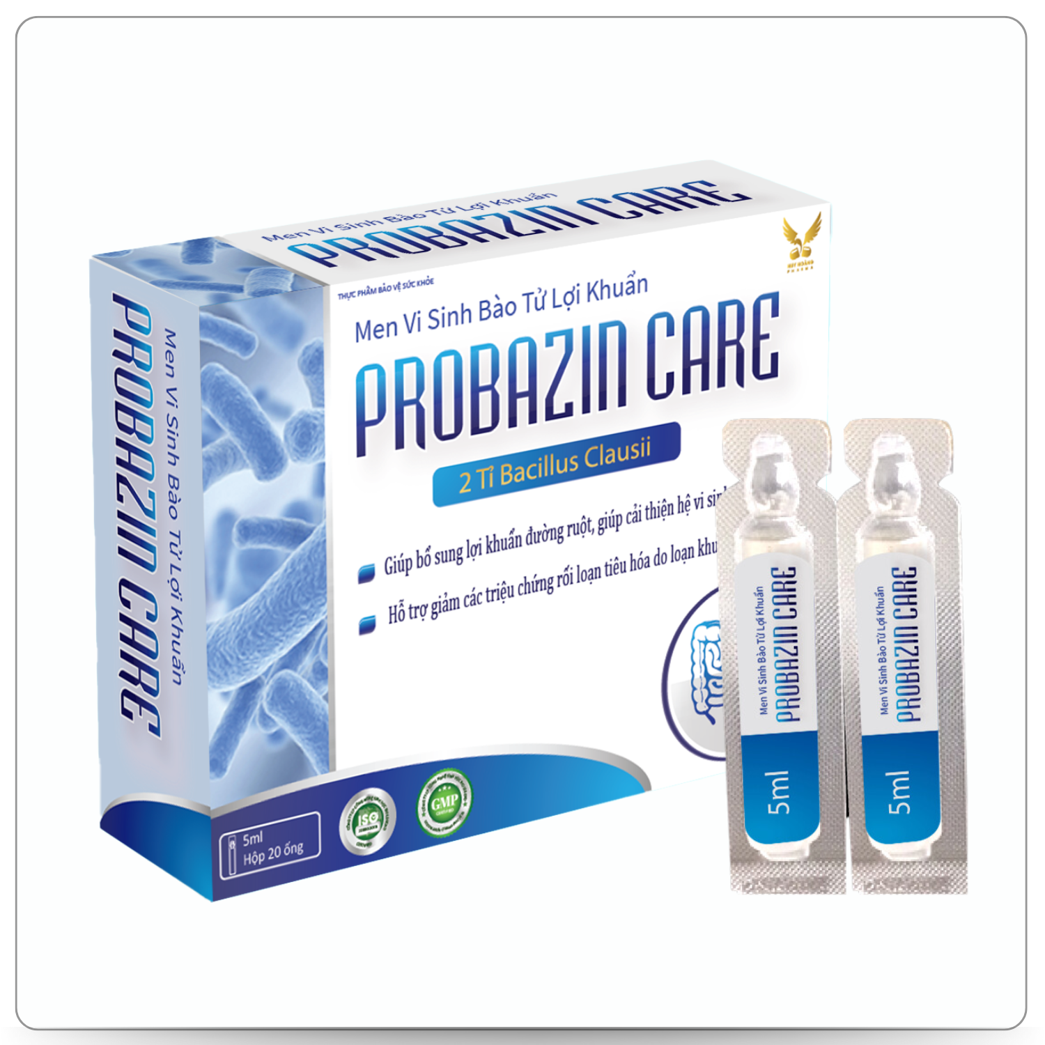 Probazin Care chứa 2 tỉ lợi khuẩn Bacillus clausii và bổ sung kẽm hỗ trợ cải thiện hệ vi sinh đường ruột, hỗ trợ giảm các triệu chứng rối loạn tiêu hóa do loạn khuẩn đường ruột.     TRONG SẢN PHẨM PROBAZIN CARE CÓ CHỨA CÁC THÀNH PHẦN:  Trong 5ml có chứa: – Bacillus clausii: 2×10⁹CFU – Kẽm Gluconate: 5mg – Phụ liệu: Nước tinh khiết.   SẢN PHẨM PROBAZIN CARE GIÚP: – Hỗ trợ bổ sung lợi khuẩn đường ruột, giúp cải thiện hệ vi sinh đường ruột. – Hỗ trợ giảm các triệu chứng rối loạn tiêu hóa do loạn khuẩn đường ruột. CÁCH SỬ DỤNG SẢN PHẨM PROBAZIN CARE:  – Lắc đều trước khi sử dụng. – Trẻ từ 6 tháng tuổi đến dưới 1 tuổi: Tham khảo ý kiến chuyên gia y tế trước khi dùng (liều tham khảo: Uống 5-10ml/lần x 1 lần/ngày). – Trẻ em từ 1 tuổi – 6 tuổi: Uống 5-10ml /lần x 1-2 lần/ngày. – Trẻ trên 6 tuổi và người lớn: Uống 5-10ml/lần x 2 lần/ngày. Chú ý: – Ống có thể nhìn thấy các hạt nhỏ lơ lửng hoặc lắng ở đáy do sự tập trung của các bào tử. Điều đó không ảnh hưởng đến chất lượng sản phẩm. – Không sử dụng cho người mẫn cảm với bất kỳ thành phần nào của sản phẩm.  – Người sử dụng thuốc tham khảo ý kiến chuyên gia trước khi dùng. – Thực phẩm này không phải là thuốc, không thể thay thế thuốc chữa bệnh.