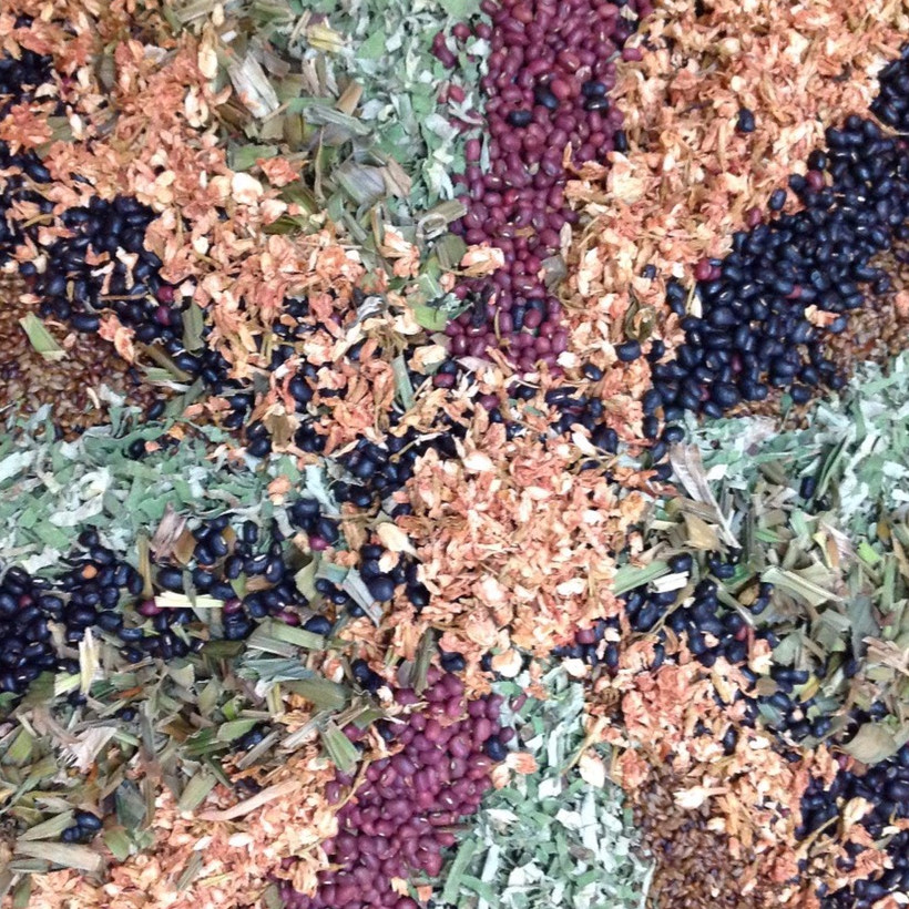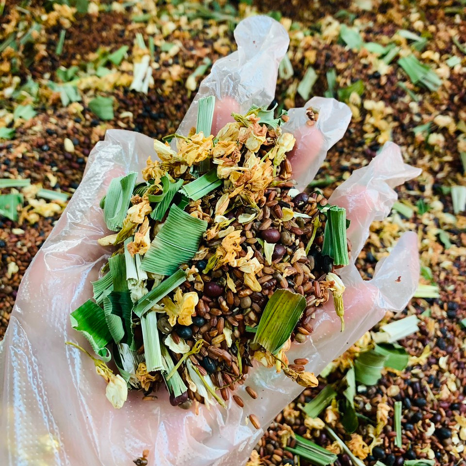 Thành phần: gạo lứt huyết rồng ,đậu đen xanh lòng, đậu đỏ, đậu xanh, thảo quyết minh ,hoa hoè, hoa lài, lá dứa