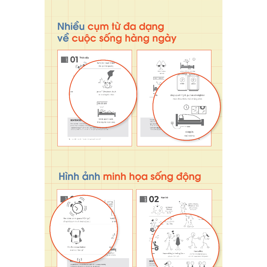 Cuốn sách giúp người học dễ dàng ghi nhớ và ứng dụng vào thực tế các cách diễn đạt tiếng Anh tự nhiên nhờ phương pháp học theo cụm từ kèm hình minh họa, và ví dụ gần gũi với đời sống. Ngoài ra, người học có thể luyện kỹ năng nghe – nói một cách hiệu quả qua file audio với phát âm của người bản ngữ.