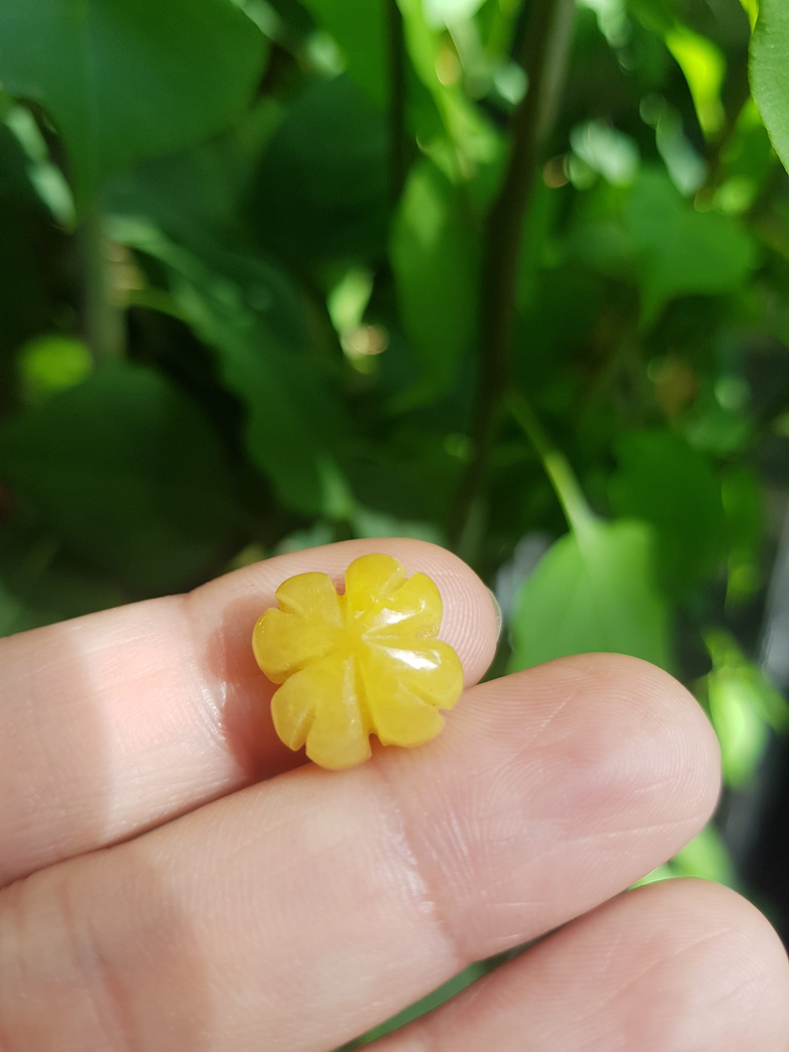 ✨Trang sức phối vòng tay Bông Hoa Cỏ 4 Lá Đá cẩm thạch VÀNG ANH ĐẬM đẹp Size bông 14mm x 6mm x lỗ đk 2mm Nữ mệnh Kim Thổ Thủy phối với Vòng đeo tay, làm mặt dây chuyền, mặt nhẫn đeo ạ