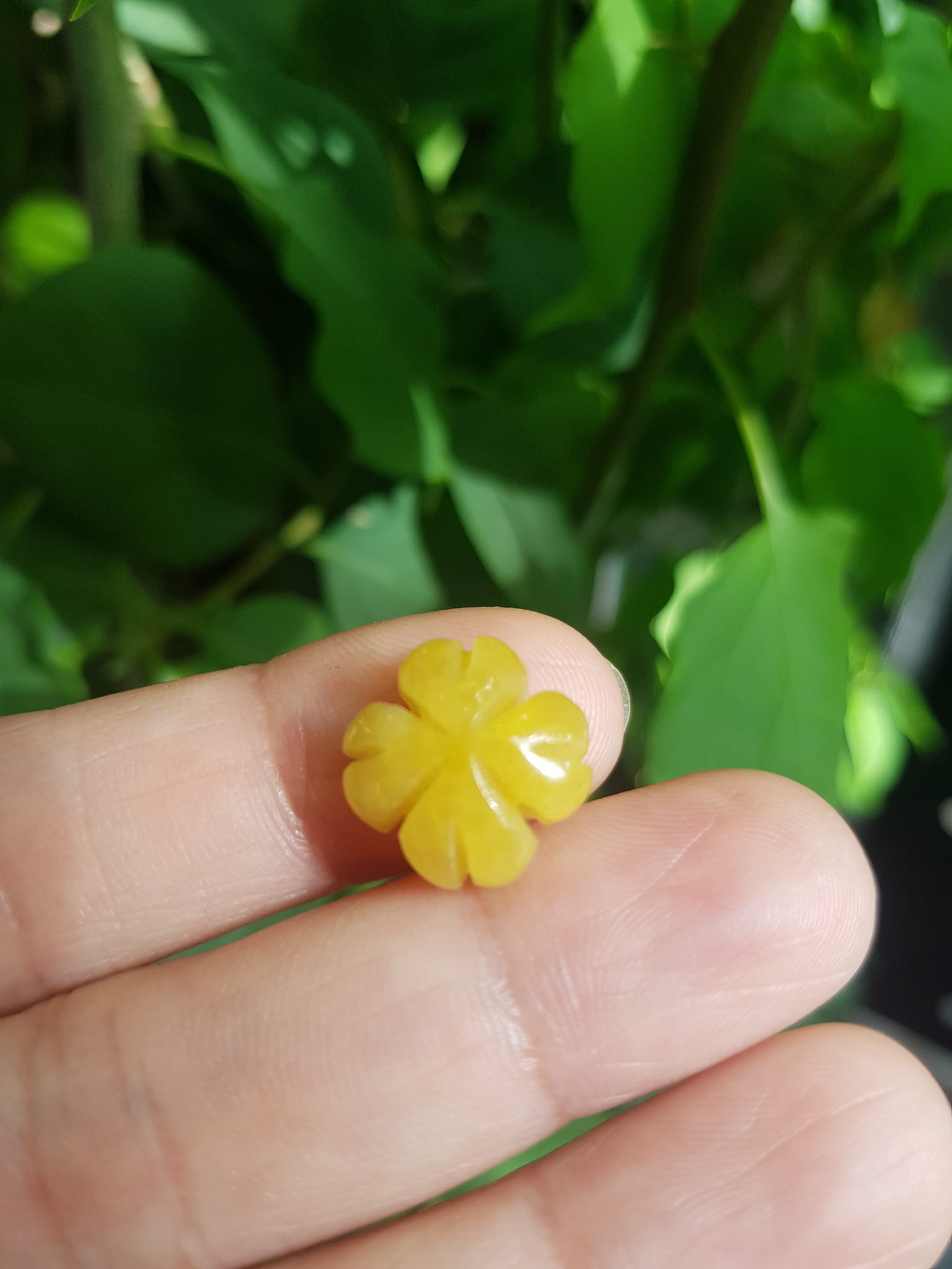 Trang sức phối vòng tay Bông Hoa Cỏ 4 Lá Đá cẩm thạch VÀNG ANH ĐẬM đẹp Size bông 14mm x 6mm x lỗ đk 2mm Nữ mệnh Kim Thổ Thủy phối với Vòng đeo tay, làm mặt dây chuyền, mặt nhẫn đeo ạ