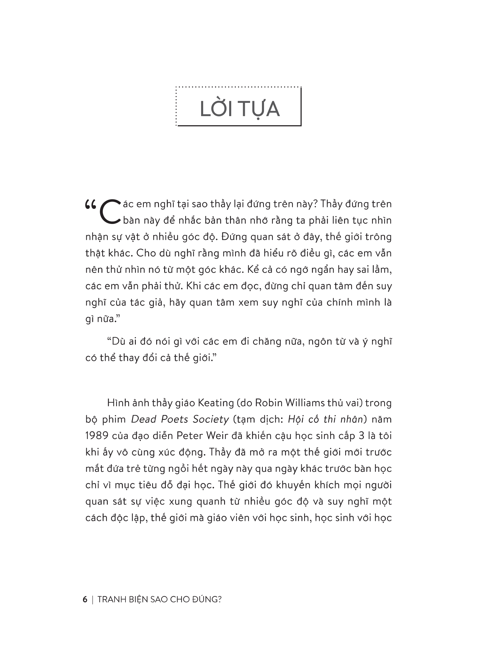 Tranh Biện Sao Cho Đúng Tranh biện sao cho đúng? là cuốn sách không chỉ đơn thuần đưa ra những kĩ năng để giành chiến thắng trên đấu trường tranh biện, nó còn nêu
