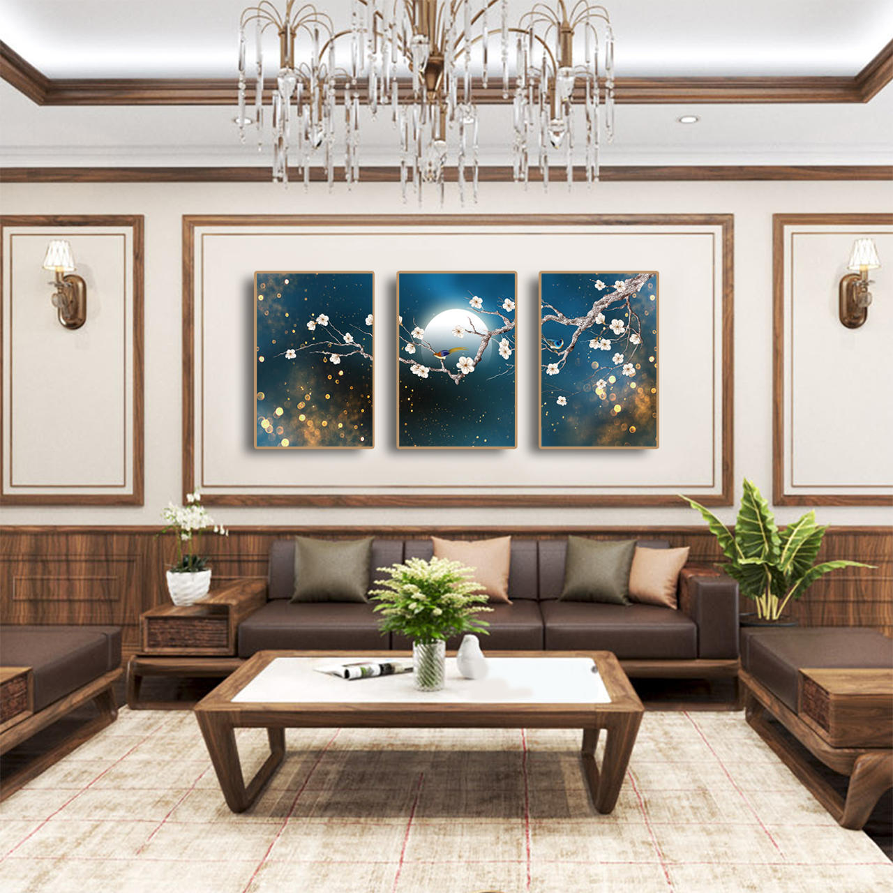 Khung Tranh : Khung tranh được làm từ chất liệu nhựa PVC giả gỗ, họa tiết nổi,màu sắc chân thực, Bản khung tranh-8cm