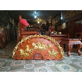 _ Tranh cánh quạt khắc tích mã đáo thành công được làm bằng chất chất liệu gỗ hương đỏ tự nhiên 100% _ Kt 50×100 dầy 4cm _ Tranh được khắc nổi tỉ mỉ ,tinh