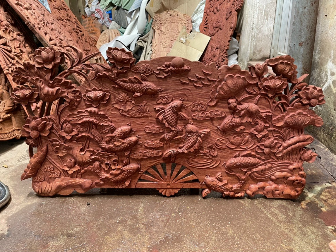 Tranh gỗ Cửu ngư quần hội bằng gỗ Hương kích thước 2m55