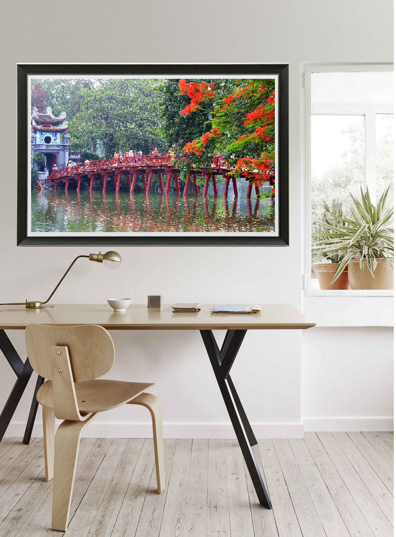 Tranh in trên vải canvas hội họa Kích thước: 60x40cm Tấm lưng bằng gỗ HDF lõi xanh nhập khẩu. Khung vật liệu composite. Không bị ảnh hưởng bởi nước, ẩm mốc. Tặng kèm đinh 3