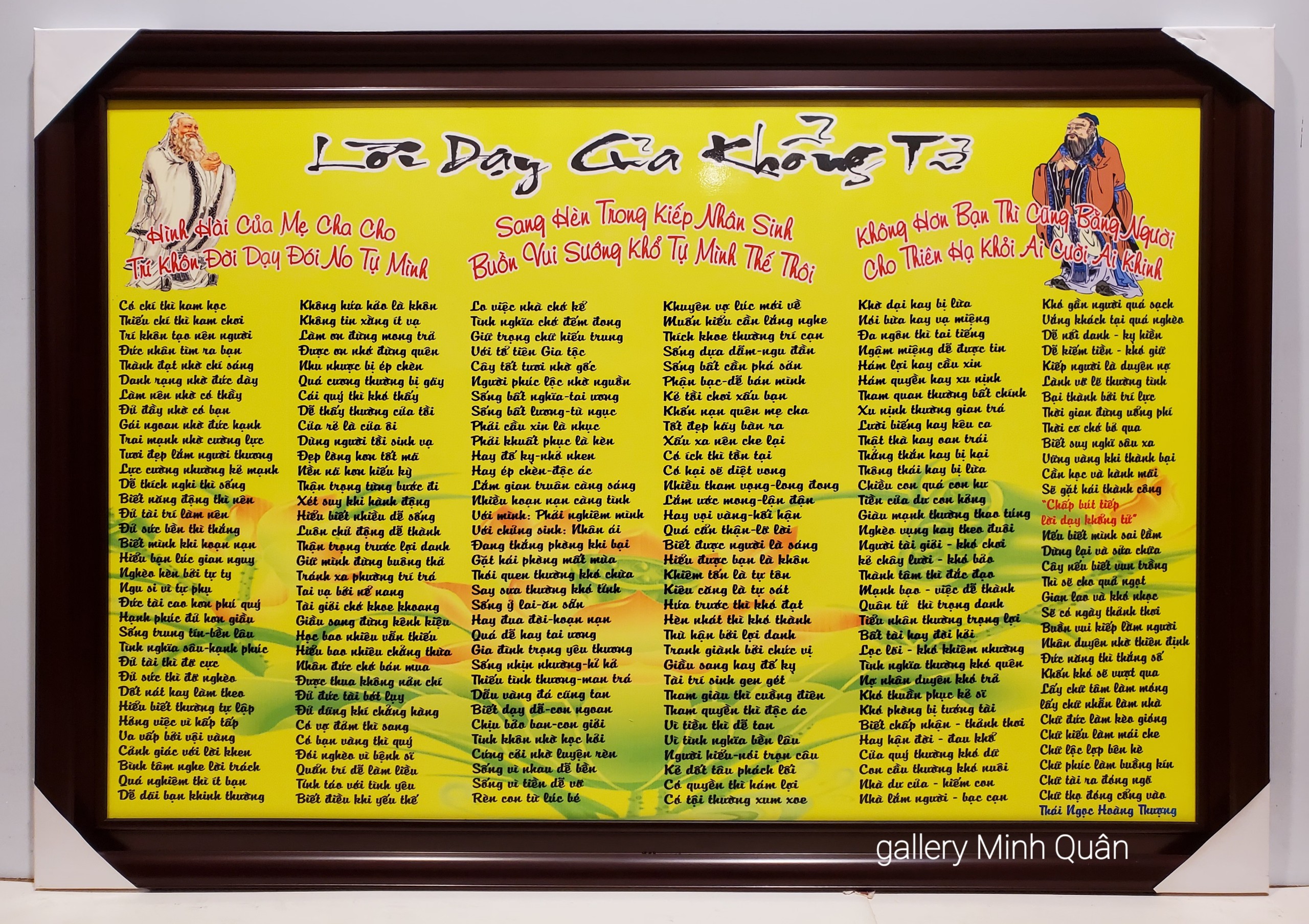 Tranh lời dạy khổng tử gỗ lụa 50x75, in công nghệ ảnh, ko phai màu