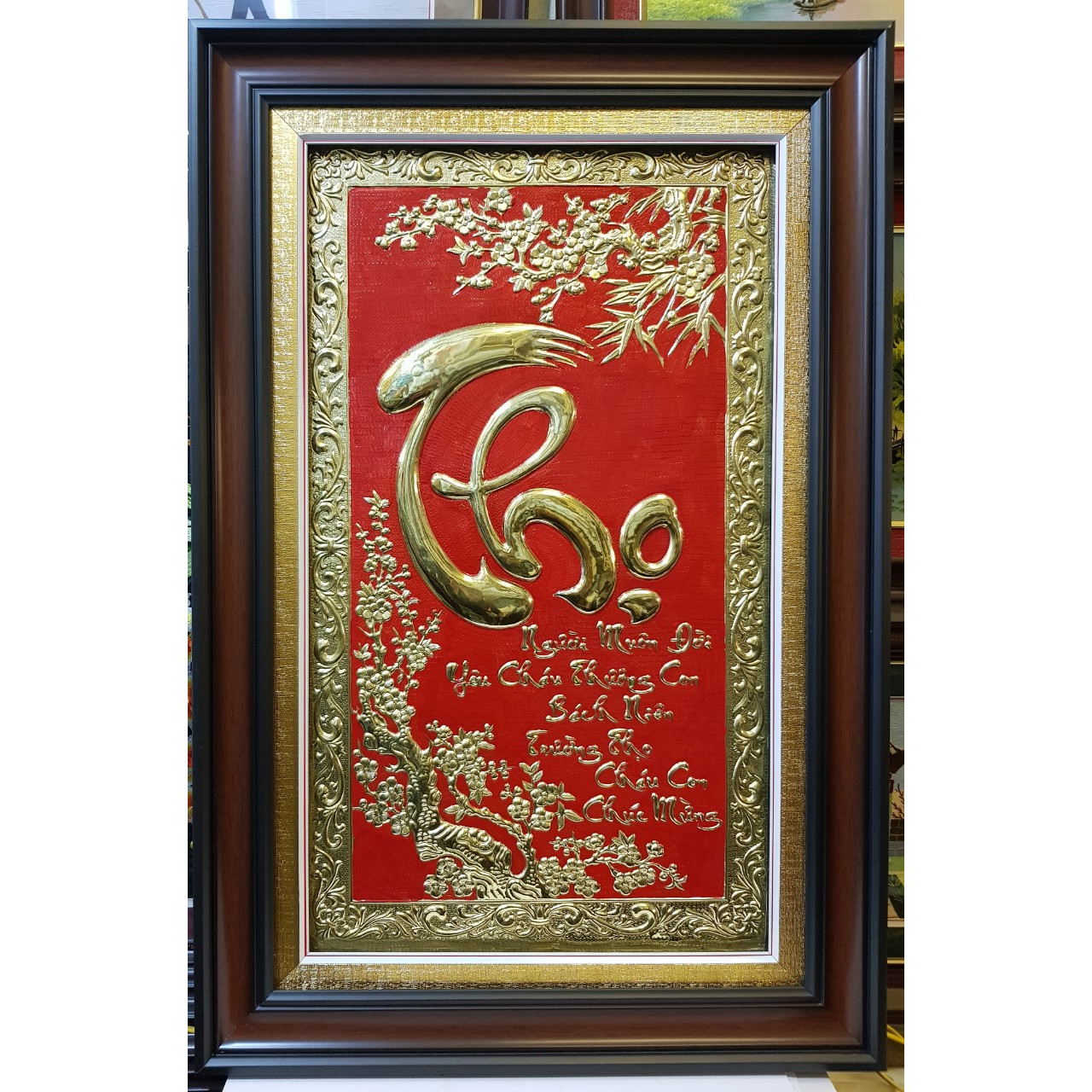 ✨Tranh đồng vàng nguyên chất liền tấm trạm khảm chữ THỌ tiếng VIỆT- A214