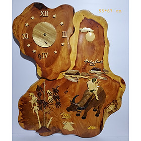 Mua tại TiktokTranh gỗ ghép nghệ thuật - Chăn trâu thối sáo Chất liệu gỗ Hương thuộc dòng gỗ quý án máy đồng hồ chạy kim trôi Kích thước 55*67cm