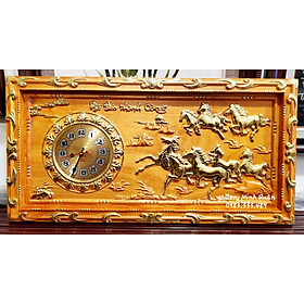 Mua tại TiktokTranh gỗ Mã Đáo Thành Công gắn đồng hồ -TG228 Chất liệu gỗ hương được chế tác đục nổi, mạ vàng đài loan sơn PU Máy đồng hồ Đài Loan chạy chuẩn bền Kích thước dày 3cm41cm81cm